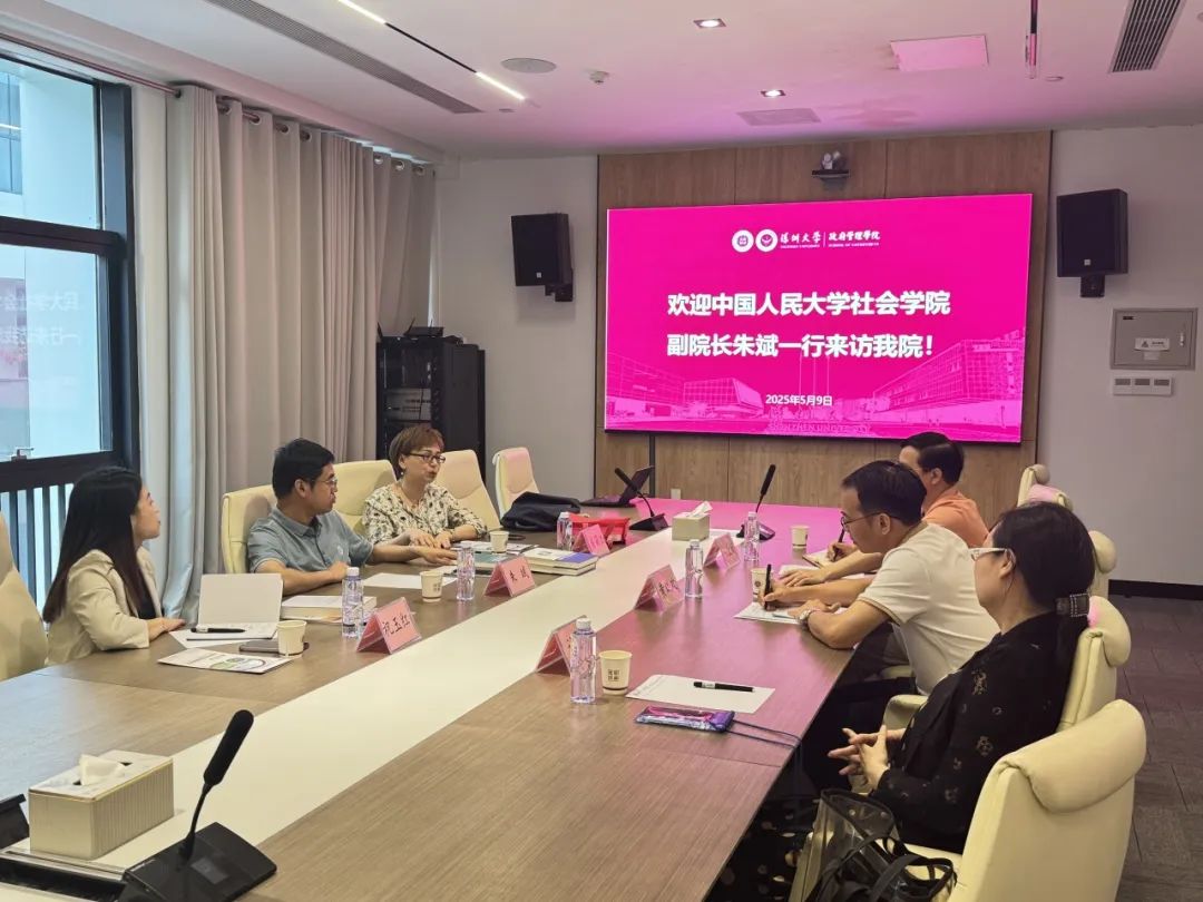 2025年5月9日上午,中国人民大学社会学院副院长朱斌副教授、房莉杰教授、祝玉红教授到访我院,学院副院长黄斌欢副教授、社会学系主任池上新副教授和许英教授出席座谈会。会议由黄斌欢主持。会前,中国人民大学社会学院一行在池上新带领下参观了深圳大学政府管理学院文化墙。在参观过程中,代表团深入了解了学院的发展历程、学科建设成果,以及社会工作专业的特色与优势。随后,双方移步至守正楼B201会议室进行交流座谈。 朱斌...