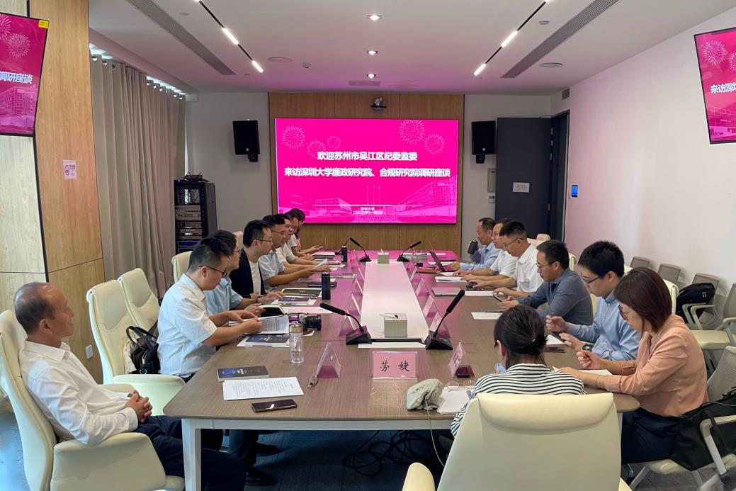 2023年11月3日上午,苏州市吴江区委常委、区纪委书记、监委主任汤浩一行来深圳大学廉政研究院、合规研究院进行调研座谈。政府管理学院党委书记、廉政研究院执行院长陈文,粤港澳大湾区新兴产业研究院院长龚晓峰,法学院副院长、合规研究院执行院长叶海波,政府管理学院副院长、廉政研究院副院长谷志军,廉政研究院副院长兼办公室主任吴灏文,中兴通讯反商业贿赂合规部部长徐雪冬,广东华商律师事务所律师王中铠,廉政研究院特邀...