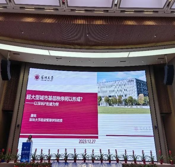 2023年12月27日,由中国社会治理研究会主办、深圳市龙华区观湖街道办事处承办的“治理有效·服务提升·幸福加码”基层治理创新交流会在深圳市捷顺科技中心国际会议厅举办。来自中国社会治理研究会、华南理工大学、浙江工商大学、北京科技大学等高校及研究机构,以及来自北京市朝阳区双井街道、上海市浦东新区沪东新村街道、郑州市管城区陇海马路街道、佛山市禅城区南庄镇、龙华区政法委及各街道职能部门负责人、社区代表共80余人出席了此次会议。我院易松国教授、唐娟教授受邀参会。