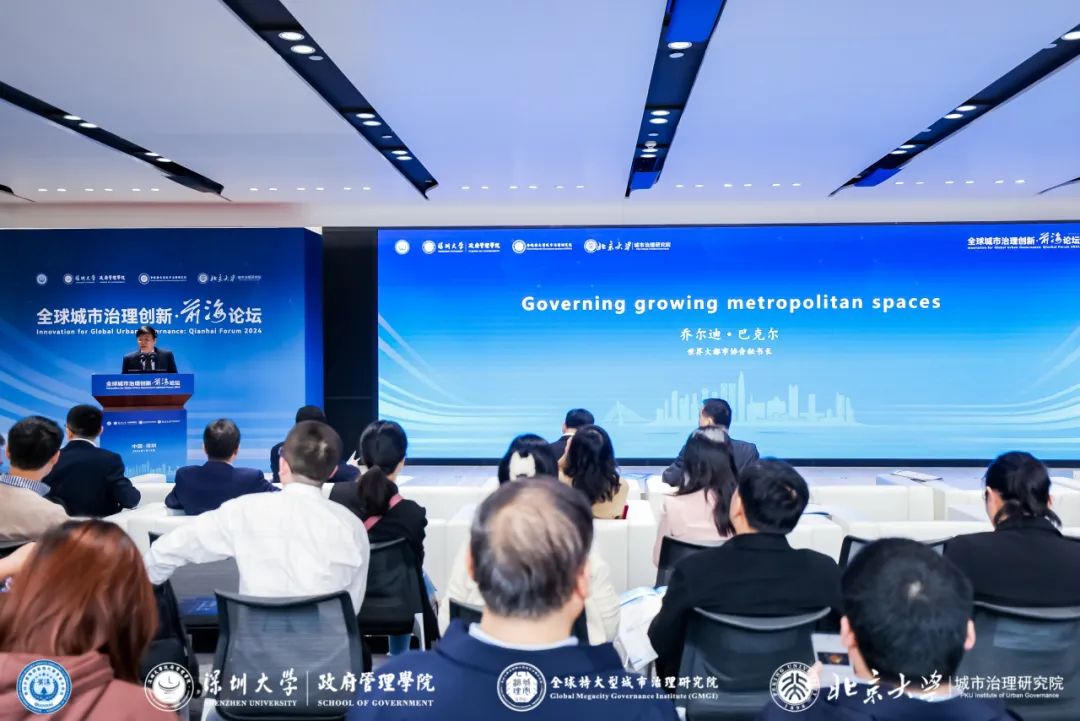 2024年1月13日上午,“全球城市治理创新·前海论坛”在深圳前海国际人才港港湾报告厅举行。深圳大学政府管理学院、深圳大学全球特大型城市治理研究院、北京大学城市治理研究院主办,来自北京大学、中央党校、中山大学、同济大学、华南理工大学、广州大学、深圳大学、浙江工商大学等,世界大都会协会、香港大学、香港中文大学、香港城市大学、澳门大学、澳门理工大学、澳门发展策略研究中心等境内外高校和智库,以及民政部政策研究中心、住建部节能与科技司、中国社会治理研究会、深圳前海合作区党工委等科研机构和党政部门的100余位嘉宾与会,共论全球城市治理创新、粤港澳大湾区建设和前海创新发展。