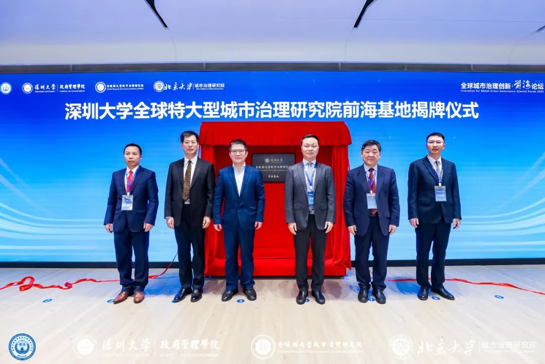 接着,举行了深圳大学全球特大型城市治理研究院前海基地揭牌仪式、中国城市治理创新案例数据库及《全球特大型城市治理研究丛书》启动仪式,由深圳大学社会科学部主任曾宪聚教授主持。王锦侠副局长、吴报水副书记、俞可平院长,中国工程院院士、北京大学城市治理研究院学术委员会主任陈军教授,深圳大学政府管理学院、全球特大型城市治理研究院陈文教授、谷志军教授,共同为基地揭牌并启动数据库建设和丛书编写。