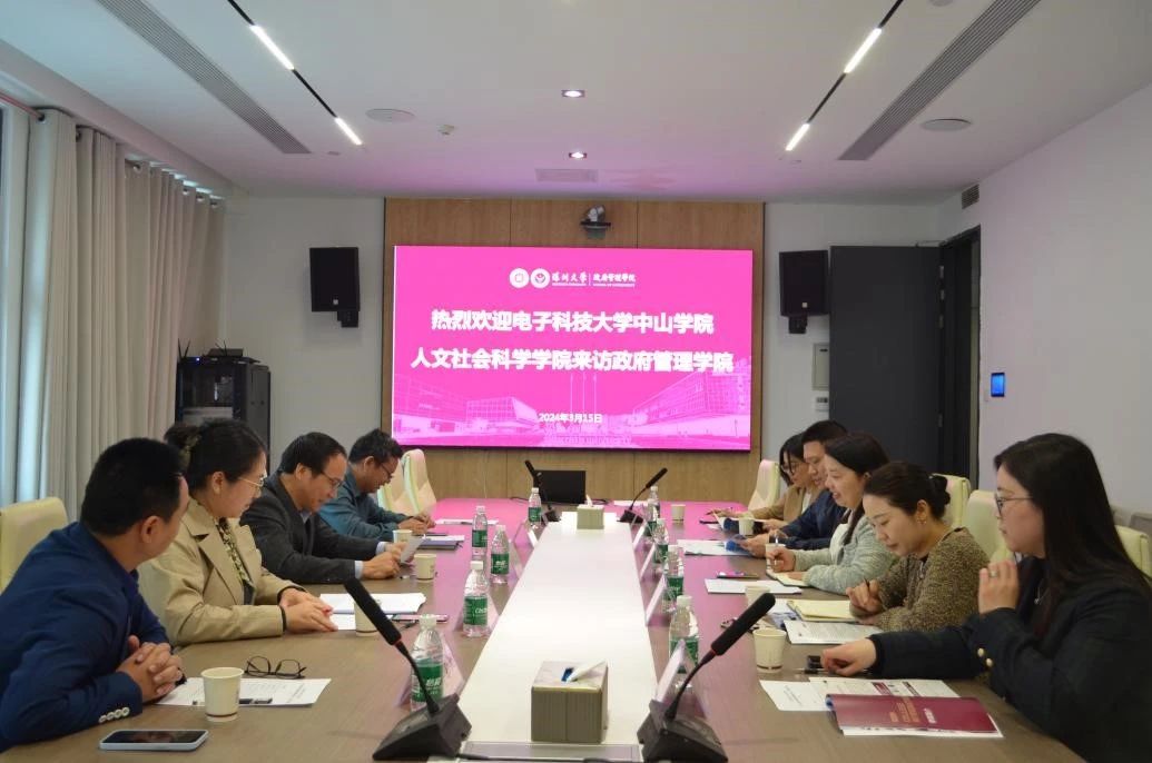 2024年3月15日,电子科技大学中山学院人文社会科学学院副院长邓雪琳、公共管理系系主任黄佳圳、程宇副教授以及教务秘书阮影芙、曾志敏一行来访政府管理学院调研交流。副院长黄斌欢、行政管理系系主任罗文恩、副系主任耿旭等参加座谈。会议由罗文恩主持。