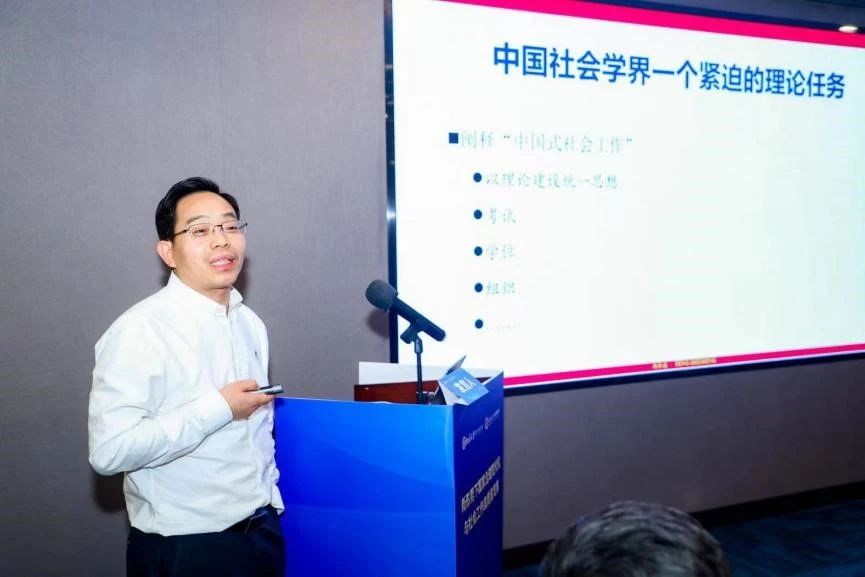 冯仕政对“中国特色的社会工作:内涵、任务与目标”进行了分享,他从《党和国家机构改革方案》文件中分析组建中央社会工作部对指导和建设社会工作专业人才队伍具有重要意义。他认为目前中国社会学界面临着紧迫建设“中国式社会工作”理论的任务,从而强调应该以理论建设统一思想,完善考试、学位等机制体系。他充分阐释“中国式社会工作”的内涵是保持社会稳定、涵育社会活力、促进社会发展;“中国式社会工作”的外延包含体制内和体制外两个领域,以及倡导与化解两个方向。最后,冯仕政深入阐释了中国式社会工作实践中“发展与秩序之间的矛盾”的转型悖论,指出要警惕“中等收入陷阱”这一特殊形态的转型困境。