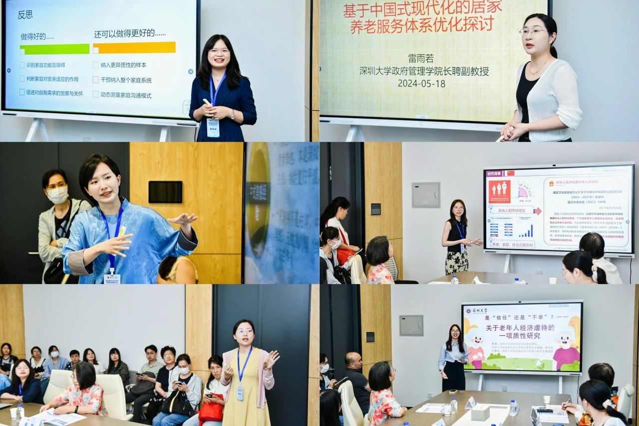 会议的平行论坛二,主讲学者分别根据养老创新与人文关怀:探索家庭支持与社会融合展开主题分享。深圳大学政府管理学院唐娟教授主持平行论坛二,中国人民大学隋玉杰副教授进行点评。深圳大学心理学院唐苏勤副教授分享了家庭视角下的哀伤干预个案研究;深圳大学政府管理学院雷雨若副教授分享了基于中国式现代化的居家养老服务体系构建;深圳大学政府管理学院李冰玉副教授分享了本真性、美感经验与老年认知障碍患者照护;深圳大学医学部护理学院彭舟媛助理教授分享了养老机构老年认知障碍者支持性护理环境研究;深圳大学政府管理学院硕士研究生黄靖懿分享了老年人经济虐待的质性研究。