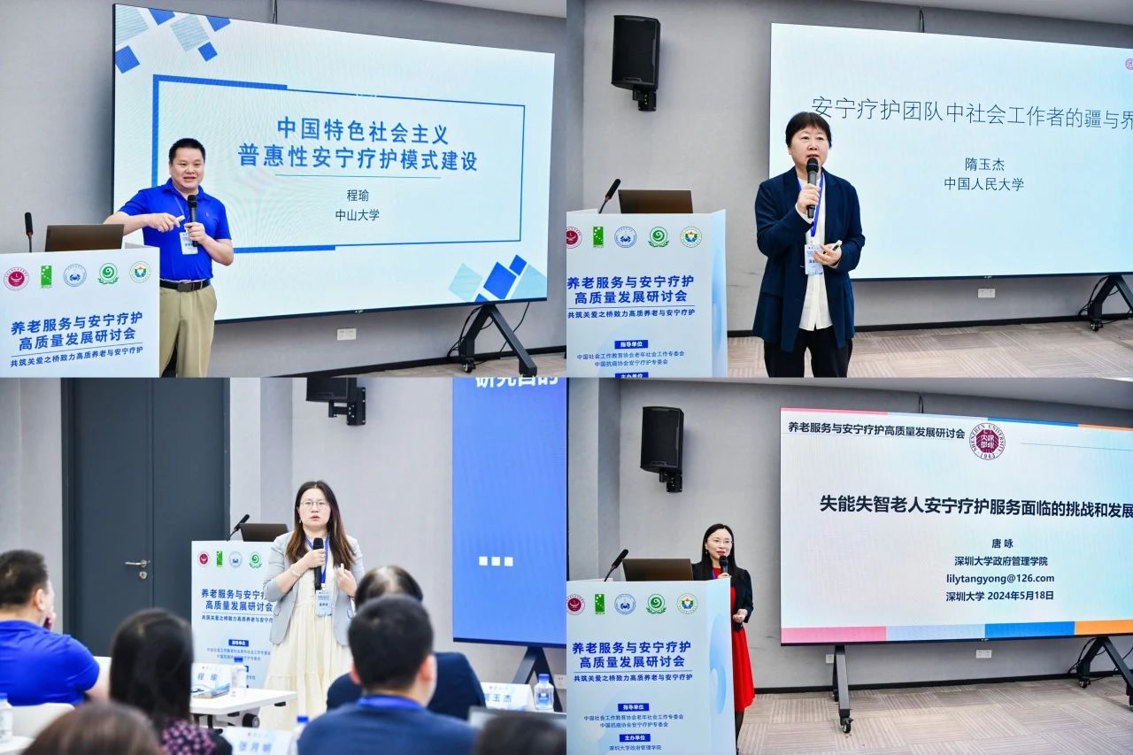 2024年5月18日,以“共筑关爱之桥,致力高质养老与安宁疗护”为主题的“养老服务与安宁疗护高质量发展”研讨会在深圳大学政府管理学院顺利举办。本次研讨会有来自中山大学、中国人民大学、复旦大学、清华长庚医院、中山大学附属第七医院、深圳大学总医院、香港大学深圳医院、深圳市儿童医院、深圳慈海医院等多家单位的20余位专家学者和实务工作者参与,共同研讨养老服务与安宁疗护领域的发展现状、挑战与机遇。本次研讨会由中国社会工作教育协会老年社会工作专委会、中国抗癌协会安宁专委会指导,深圳大学政府管理学院主办,深圳市社会工作者协会和深圳市老年病学会协办,本次研讨会得到社会各界的广泛关注。