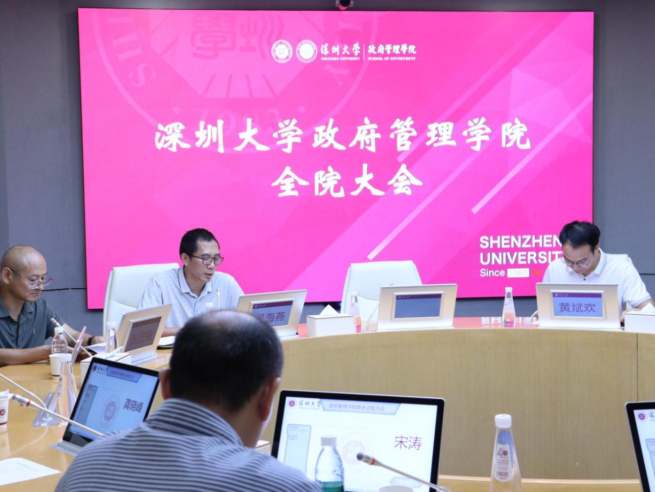 7月12日下午,政府管理学院在守正楼A214召开期末全院大会。学院党委书记陈文、党委副书记张国强、副院长谷志军、副院长吴海燕、副院长黄斌欢出席会议。学校审计室主任段斌受邀出席会议并作合规专题讲座。会议由张国强副书记主持,学院全体教职工参加会议。