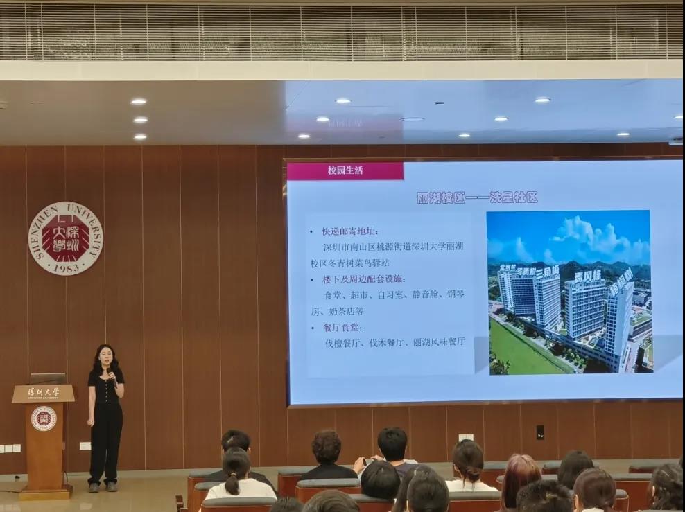 随后,本科生社会学辅导员夏君怡老师向大家介绍住宿须知。夏老师通过《深圳大学学生住宿管理办法》等文件,向大家详细阐明宿舍违规行为及违规物品,希望大家能引起重视,文明住宿,安全住宿。