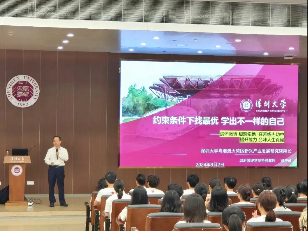 9月2日上午,政府管理学院特聘教授、粤港澳大湾区新兴产业发展研究院院长、博士生导师龚晓峰在丽湖校区启明楼D101报告厅为政府管理学院2024级本硕新生带来了题为“约束条件下找最优,学出不一样的自己——满怀激情、脚踏实地、在苦练内功中提升能力,品味人生真谛”的讲座。
