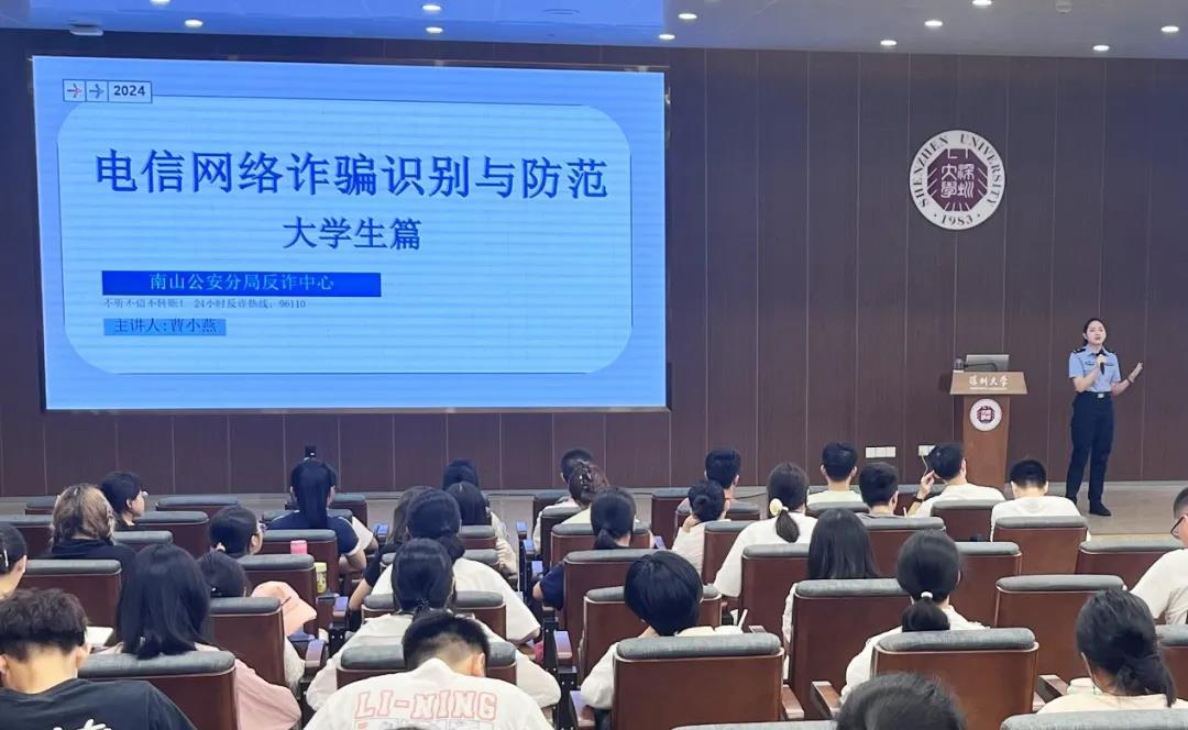 为提高同学们的反诈意识和能力,学院邀请了南山公安分局反诈中心的曹小燕警官为同学们进行了反诈知识介绍。曹警官首先介绍了一般的诈骗流程以及大学生群体常见的电信网络诈骗类型;接着通过对真实案例进行案例分析,加深同学们对诈骗手法的理解;最后对防范技巧进行了详细解说,帮助同学们学习如何识别和避免诈骗。