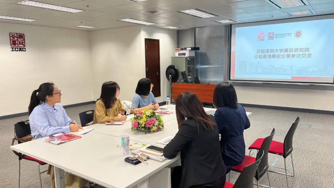 2024年10月18日,深圳大学廉政研究院研究团队前往香港廉政公署,围绕廉洁教育主题展开了深入调研。本次调研由廉政研究院廉政测评研究中心主任劳婕、公共管理系副教授梁雨晴和研究生列格以立共同参与。