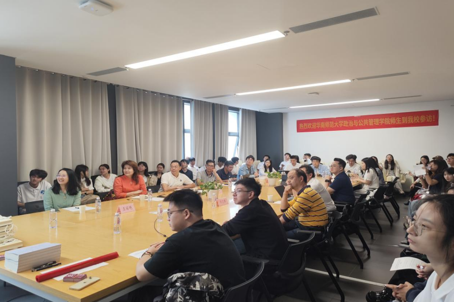 2024年11月16日上午,华南师范大学政治与公共管理学院阮思余系主任、陈世南研工办主任、刘志鹏副教授师生一行受我院公共管理硕士点的邀请来深圳大学参访,并围绕研究生培养经验进行座谈交流。