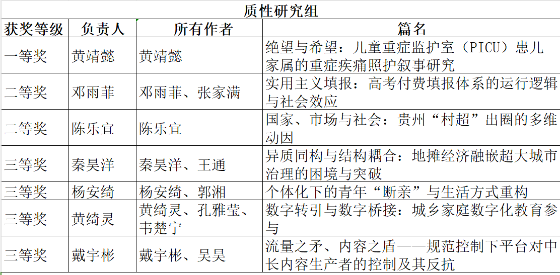 参赛选手们选取的研究主题丰富多样:有选手着眼于儿童重症监护室(PICU)患儿家属的重症疾痛照护,从不同角度探索重症疾痛照护叙事;有选手则关注影像发声法视角下参与式赋能策略研究;也有选手聚焦于地摊经济融嵌超大城市治理的困境与突破。