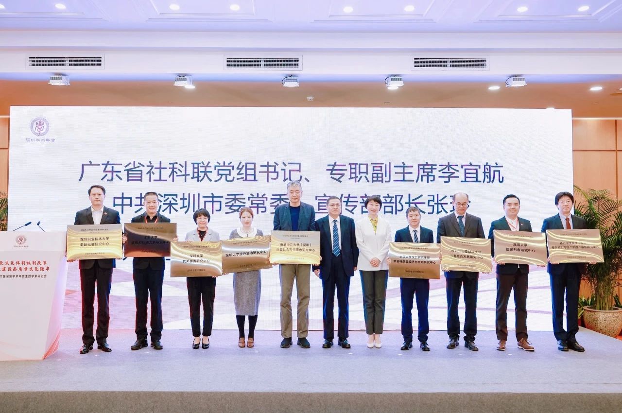 2023年11月22日,中共深圳市委宣传部、深圳市社会科学联合会、深圳报业集团在五洲宾馆举行第十五届深圳学术年会。中共深圳市委常委、宣传部部长张玲为2023年评审通过的11家“深圳市人文社会科学重点研究基地”授牌。深圳大学机关事务研究中心是本次授牌的深圳市人文社会科学重点研究基地之一,标志着深圳大学机关事务研究院的研究成果、咨政服务和社会影响力得到了高度认可。