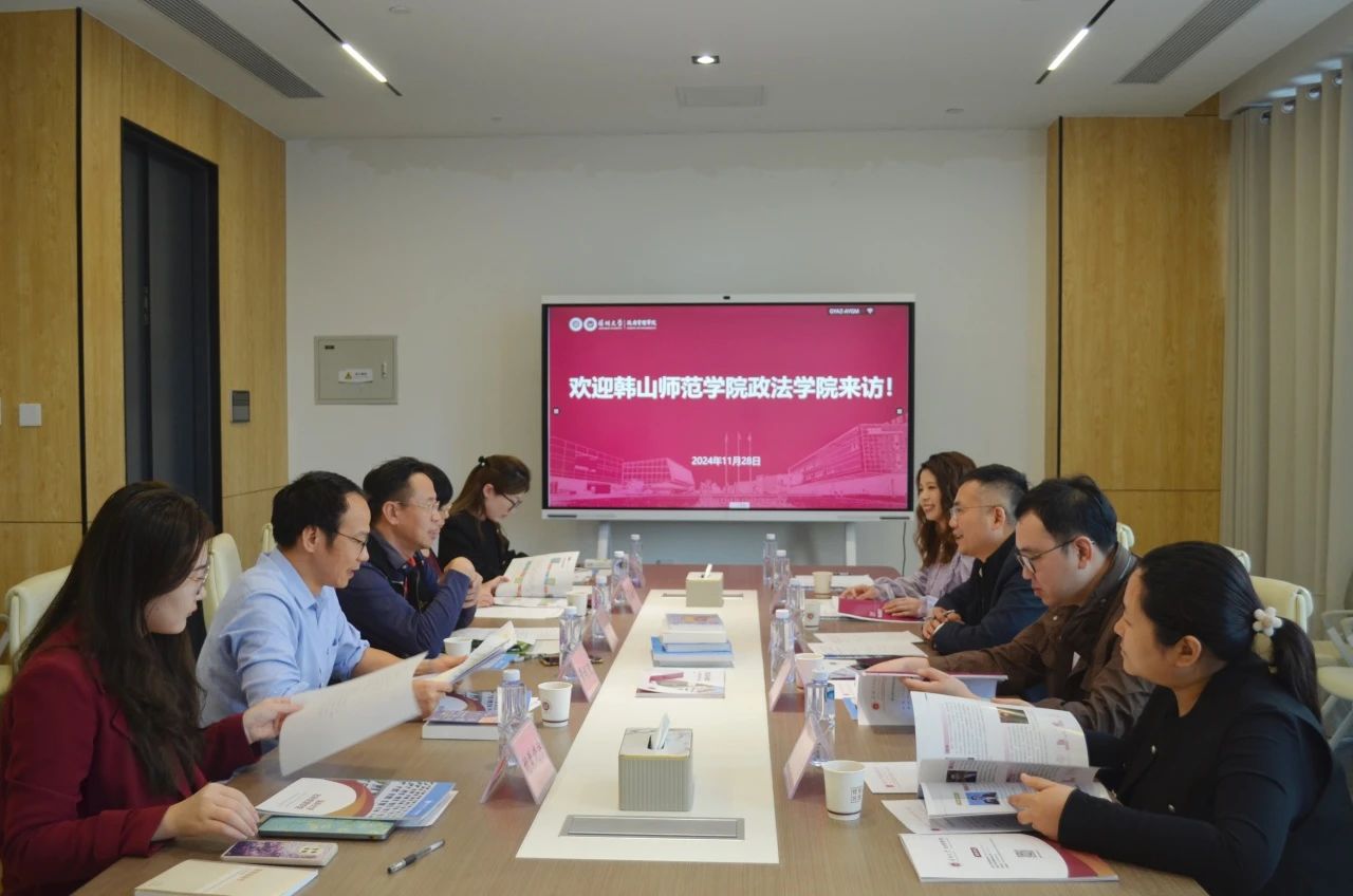 2024年11月28日下午,韩山师范学院政法学院党总支书记王耿锋书记、副院长陈岑博、刘国庆副教授、实验室主任丁华芳、社工专业教师陈婷来访深圳大学政府管理学院,双方在守正楼B203交流座谈。党委书记何燕辉、副院长吴海燕教授、副院长黄斌欢副教授、党建组织员贺敏、实验员胡裴晓宇参加会议。会议由何燕辉主持。