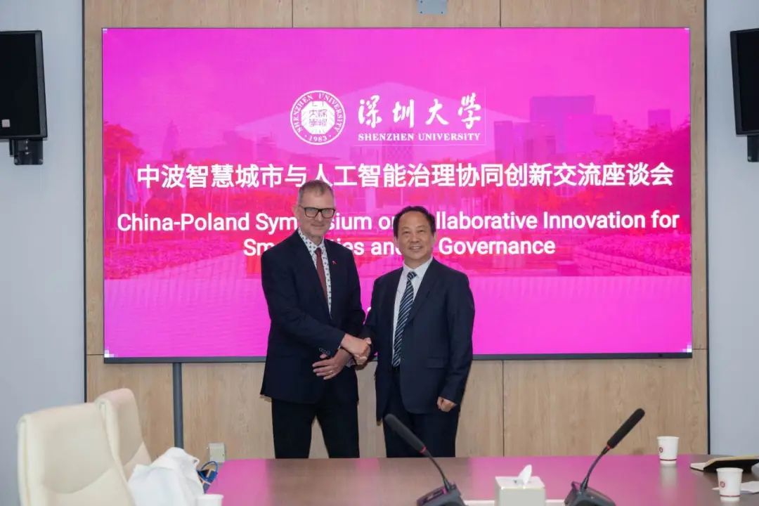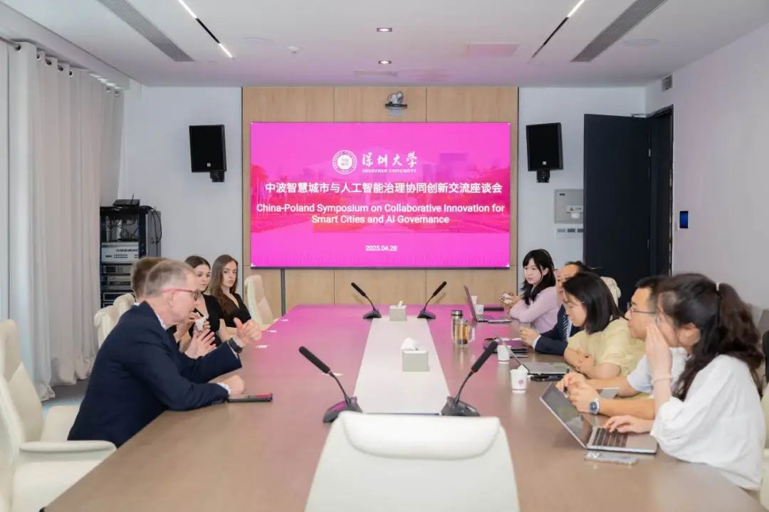 2025年4月28日,波兰亚当・密茨凯维奇大学(Adam Mickiewicz University)政治科学与新闻学院沃伊切赫·诺维亚克(Wojciech Nowiak)教授率队到访深圳大学,深圳大学政府管理学院特聘教授、粤港澳大湾区新兴产业发展研究院院长龚晓峰主持活动,双方以 “中波智慧城市与人工智能治理协同创新交流” 为主题,围绕中欧合作、人工智能产业协同及智慧城市建设等议题深入探讨,达成多项务实共识。来自深圳大学粤港澳大湾区新兴产业发展研究院、香港中文大学(深圳)国际事务研究院、香港科技大学的师生参与座谈。