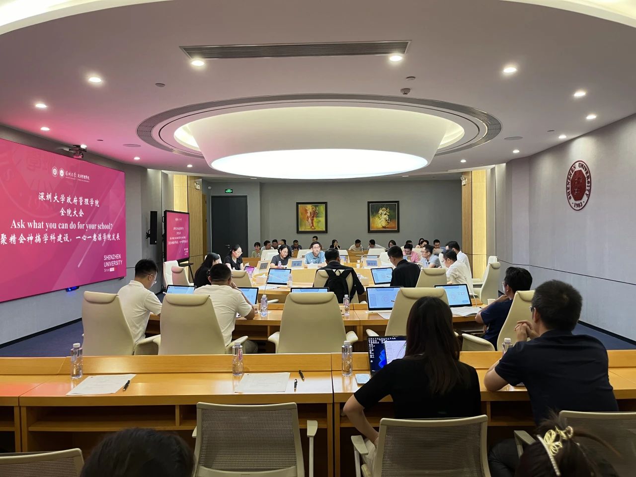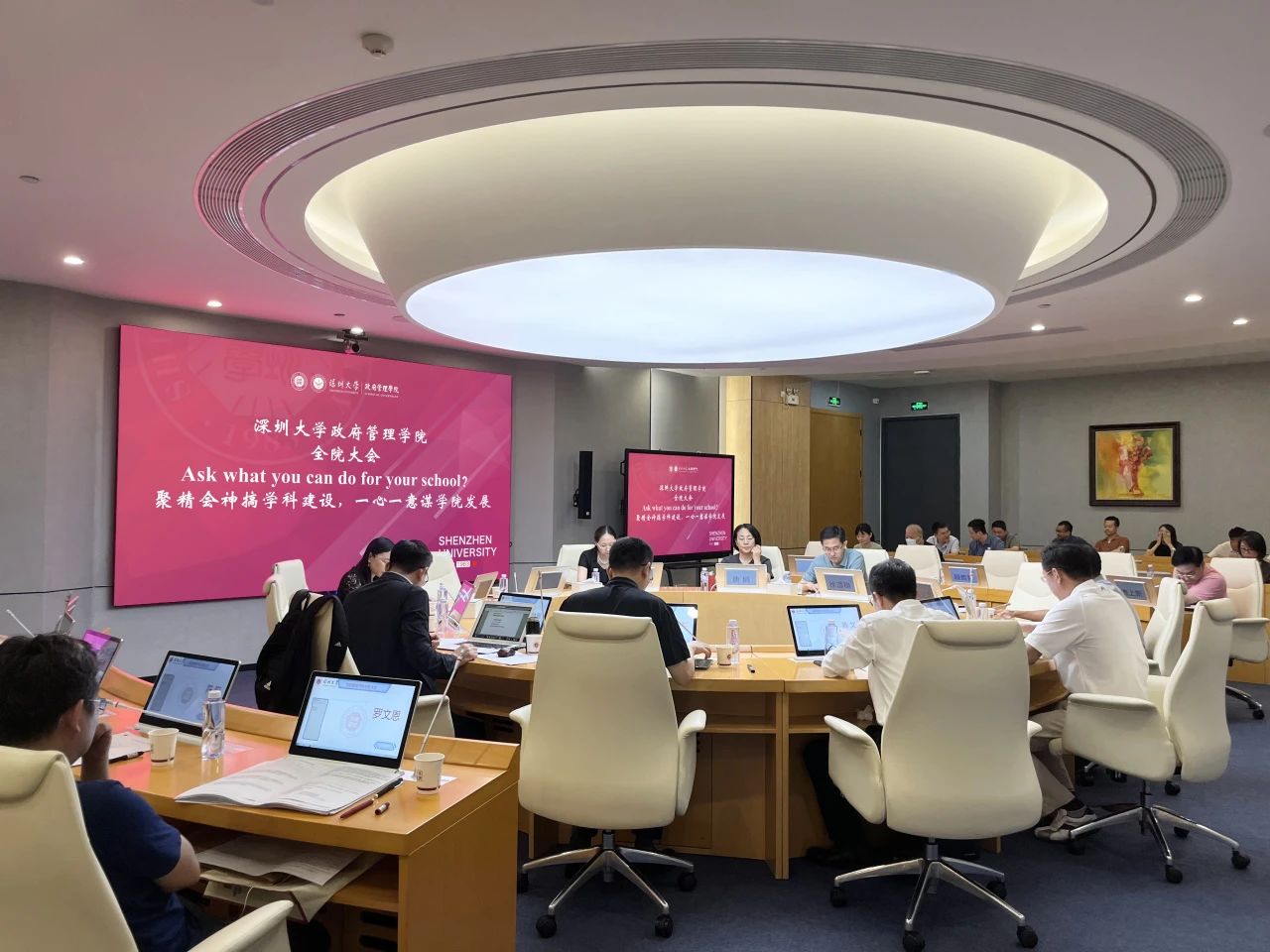 7月10日上午,政府管理学院在守正楼A214召开期末全院大会,学院党委书记何燕辉、执行院长陈文、党委副书记张国强、副院长谷志军、副院长吴海燕、副院长黄斌欢出席会议。会议由陈文主持,学院全体教职工参加会议。