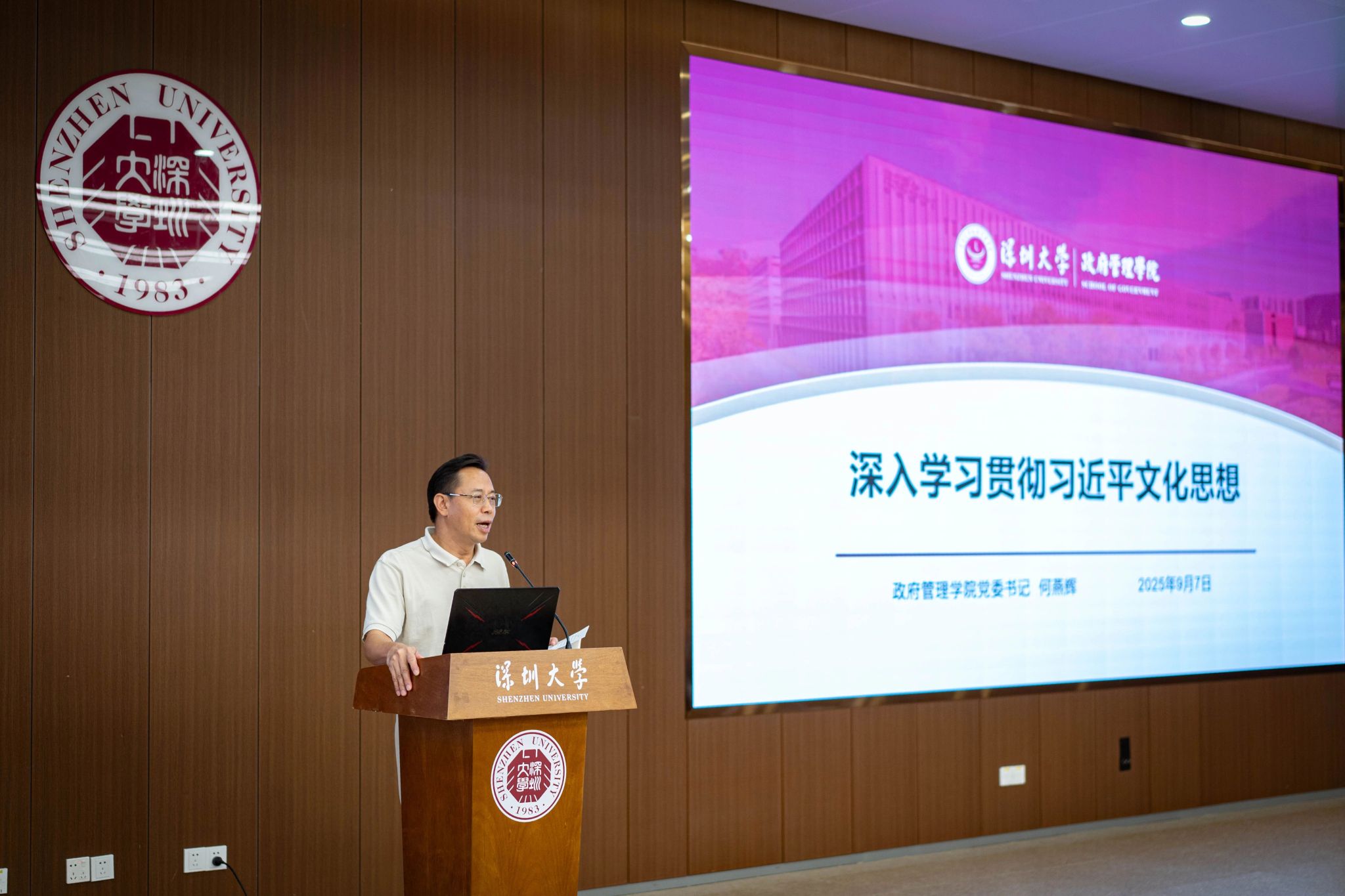 何燕辉以“深入学习贯彻习近平文化思想”为题,以文化的多维定义作为切入点,引导同学们深入思考文化的内涵及其时代意义。他强调,文化不仅承载着民族的历史记忆与精神追求,更在新时代背景下凸显出深远的使命担当。我们要坚定文化自信,核心就是实现精神上的独立自主,真诚认同和尊重中华民族文明成果,立足祖国大地,构建起中国自主的知识体系。他还阐述了铸牢中华民族共同体意识的重要意义,指出它是民族团结之本。此外,他强调主动讲好中国故事的深远意义。最后,他寄语同学们从入学之初就要养成良好的学习及生活习惯,在日常锻炼和学业中踏实进取,珍惜学校优质师资,努力掌握真才实学,成为兼具扎实学识和社会责任的栋梁之材。