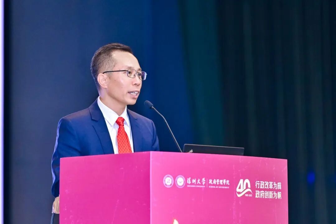 随后,深圳大学政府管理学院执行院长陈文教授作公共管理学科发展汇报。他回顾了学科建设的四十年历程,系统梳理了学科在专业建设、教材编写、科学研究、资政服务、人才培育、国际交流等方面的主要成果。重点汇报了行政管理、公共政策、城乡公共治理、社会组织管理四个重点学科方向的建设情况:行政管理方向聚焦现代政府治理理论和方法、行政管理体制改革等重点领域,在地方政府创新、政府治理能力、廉洁政府建设、大部制改革、特区行政体制、“一国两制”与港澳行政等方面形成研究特色;公共政策方向聚焦公共政策理论与方法、国际公共政策、中国公共政策实践与理论创新等重点领域,在新兴产业政策、现代科技政策、大湾区与东盟合作政策、自贸区政策、特区政策试点等方面形成研究特色;城乡公共治理方向聚焦城市公共治理理论与方法、城市公共治理、城乡融合发展与治理等领域,在超大特大城市治理、国际大都市治理、大湾区城市群发展、城市基层治理、智慧城市建设等方面形成研究特色;社会组织管理方向聚焦社会组织管理理论与方法、社会组织与政府关系等领域,在社会组织与社会治理、社会团体管理、公益慈善组织、残障社会组织、新社会组织、无障碍城市建设等方面形成研究特色。