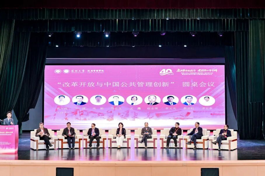 在圆桌会议环节,哈尔滨工业大学经济与管理学院院长王健教授、华中科技大学公共管理学院院长张毅教授、西安交通大学公共政策与管理学院院长周忠良教授、华东师范大学公共管理学院院长孟溦教授、浙江大学公共管理学院院长赵志荣教授、北京师范大学政府管理学院院长章文光教授、北京航空航天大学人文社会科学院院长蔡劲松教授、中山大学政治与公共事务管理学院院长谭安奎教授等以“改革开放与中国公共管理创新”为主题,结合各自所在院校的学科建设经验与研究领域,就“改革开放与政府改革创新”“数智时代公共管理学科的特色发展”“公共管理创新的实践路径”等议题深入研讨、激荡思想、交流观点。