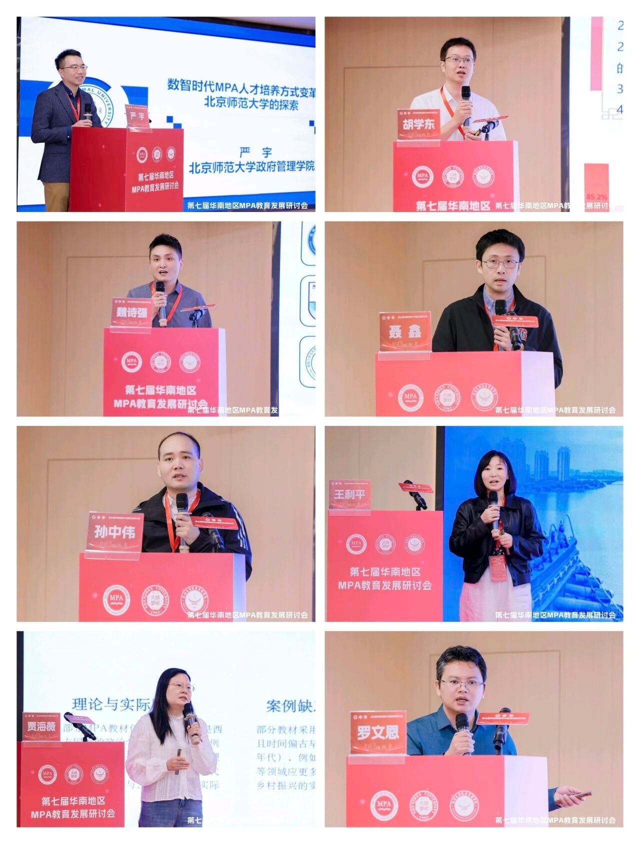 研讨会的第一单元,华南地区各院校依次分享了MPA办学经验。北京师范大学MPA教育中心主任严宇介绍了《数智时代MPA人才培养方式变革:北京师范大学的探索》;华南理工大学MPA教育中心常务副主任胡学东副教授分享了《华南理工大学MPA学位论文质量提升路径探索》;海南大学MPA教育中心执行主任魏诗强副教授介绍了《扎根海南、服务国家战略——海南大学MPA研究生培养实践》;广西大学公共管理学院院长聂鑫教授提出了《新学位法实施背景下的MPA论文质量管理》;华南师范大学政治与公共管理学院副院长孙中伟教授讲述了《政道、治道与师道:对师范院校MPA办学特色的思考》;汕头大学MPA教育中心主任王利平分享了《立足粤东,服务特区的MPA精细化培养路径探索》;华南农业大学公共管理学院副院长贾海薇教授阐述了《MPA本土化教材建设与质量提升的路径探索》;深圳大学MPA教育中心主任罗文恩副教授分享了《深圳大学MPA专业建设汇报》。