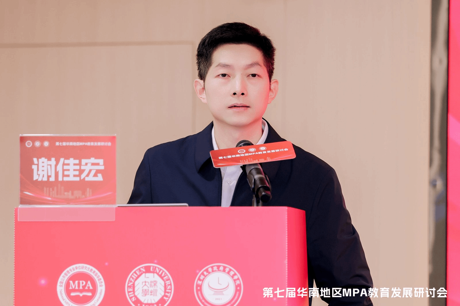 闭幕式上,全国MPA教指委秘书处办公室主任谢佳宏作会议总结。他首先对深圳大学政府管理学院承办本次会议所作出的周密安排和卓越贡献表示衷心感谢,并对所有与会嘉宾的深度参与和精彩分享给予了高度评价。谢佳宏主任指出,本次研讨会紧扣MPA教育高质量发展的核心议题,交流内容既有理论高度,又有实践深度,有效促进了华南地区各培养单位之间的互学互鉴。他希望各院校能够将会议达成的共识与启发转化为实际行动,持续深化教学改革、严把论文质量、推动模式创新,共同谱写华南地区MPA教育发展的新篇章。