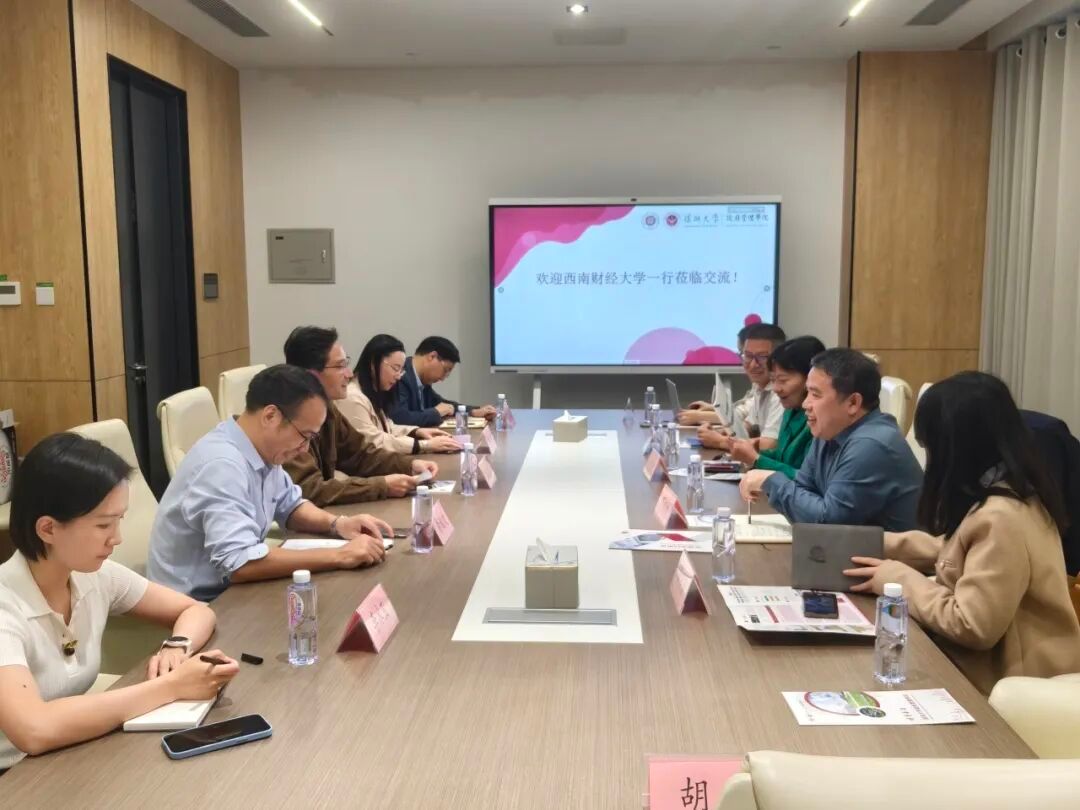 12月11日下午,西南财经大学社会学学科带头人边慧敏教授率队赴我院围绕社会工作人才培养开展调研。西南财经大学社会发展研究院副院长邓湘树教授、西南财经大学社会发展研究院李权财副教授、西华大学社会工作与健康管理学院蒋秀芳老师、西南财经大学社会发展研究院梁爽博士随同参加调研交流。深圳大学政府管理学院社会学学科带头人徐道稳教授、副院长黄斌欢副教授、社会工作硕士(MSW)教育中心主任唐咏教授、社会学系主任池上新副教授、社会工作硕士(MSW)教育中心副主任李冰玉副教授参与座谈交流。双方围绕社会工作专业博士培养、学科建设及行业前沿等主题开展深入交流。