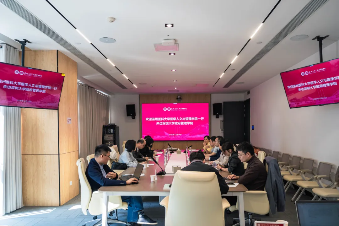 2025年12月16日上午,温州医科大学医学人文与管理学院副院长张泽洪教授、教学办副主任郑茜、学科办副主任肖丽彬、专任教师赵培阳到访我院。学院执行院长陈文教授、副院长吴海燕教授、院长助理袁方成教授、特聘教授曾婧婧、公共政策系系主任刘筱教授、公共政策系副系主任吴进进副教授、公共政策系副系主任段哲哲副教授、行政管理系副系主任符阳副教授出席会议。双方在守正楼B201交流座谈,会议由陈文主持。
