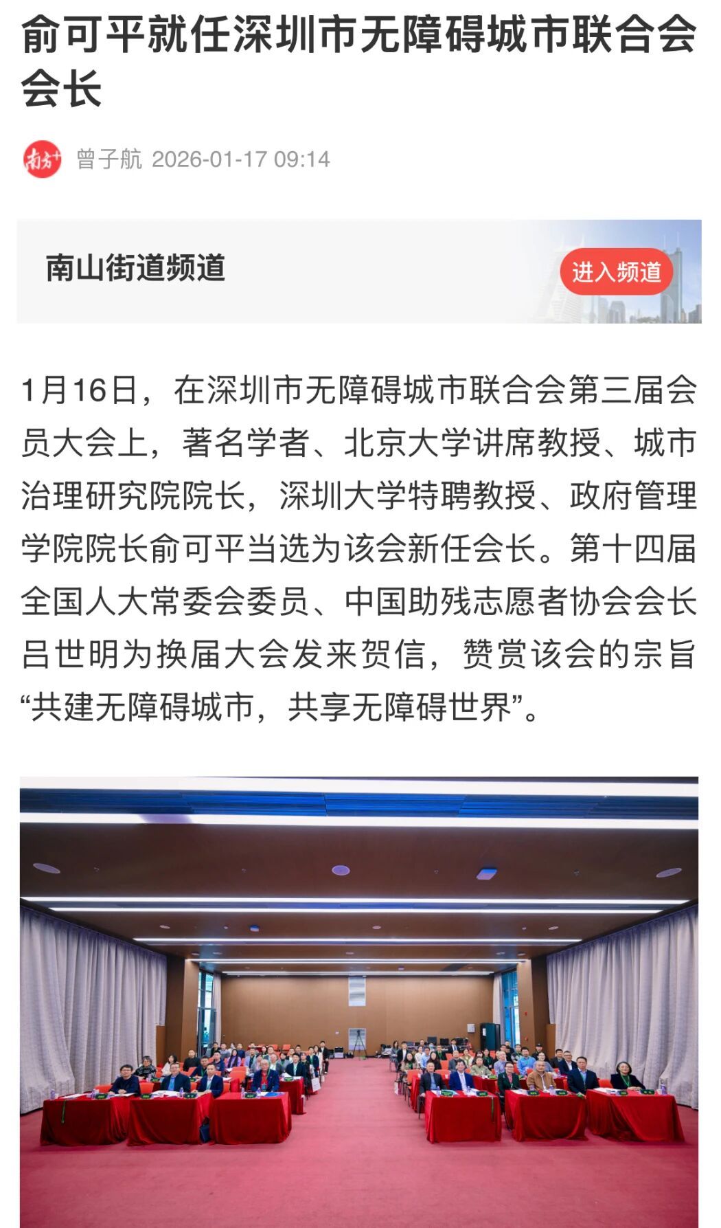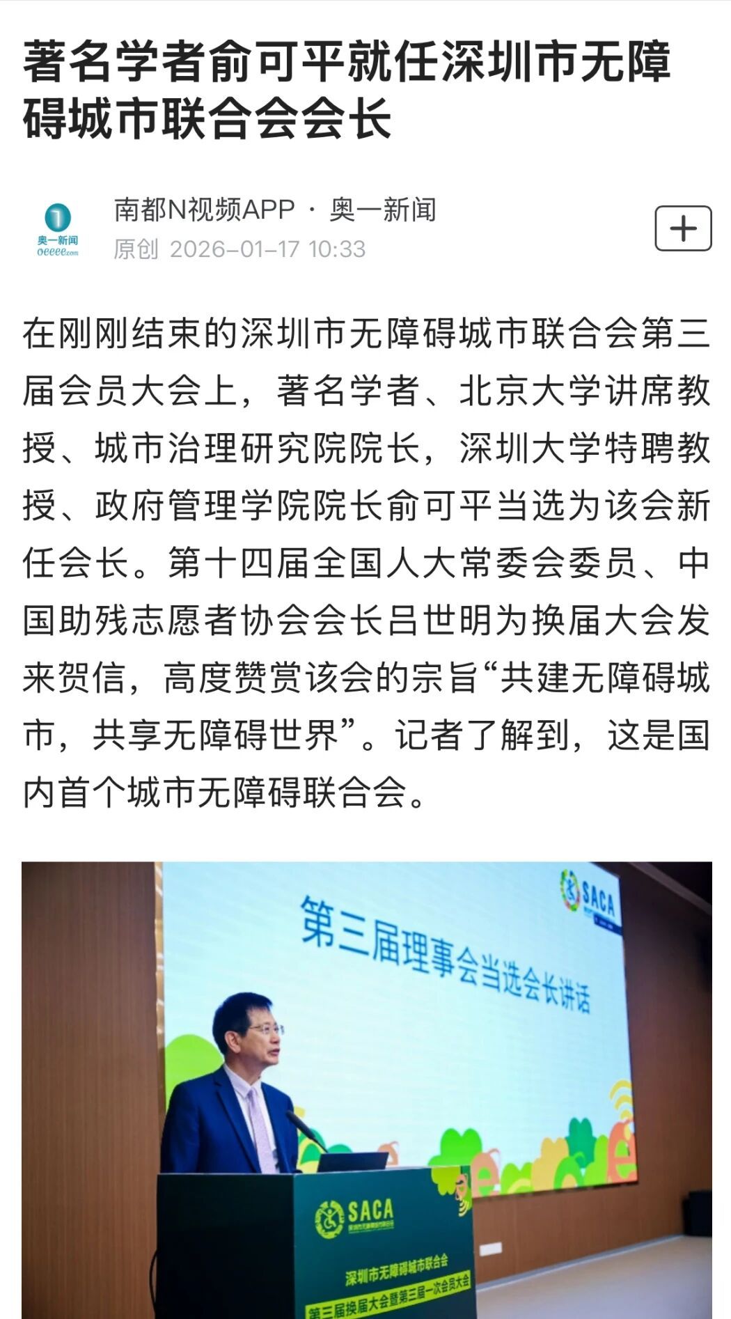 第三届理事会会长俞可平主持深圳市无障碍城市联合会第三届一次会员大会