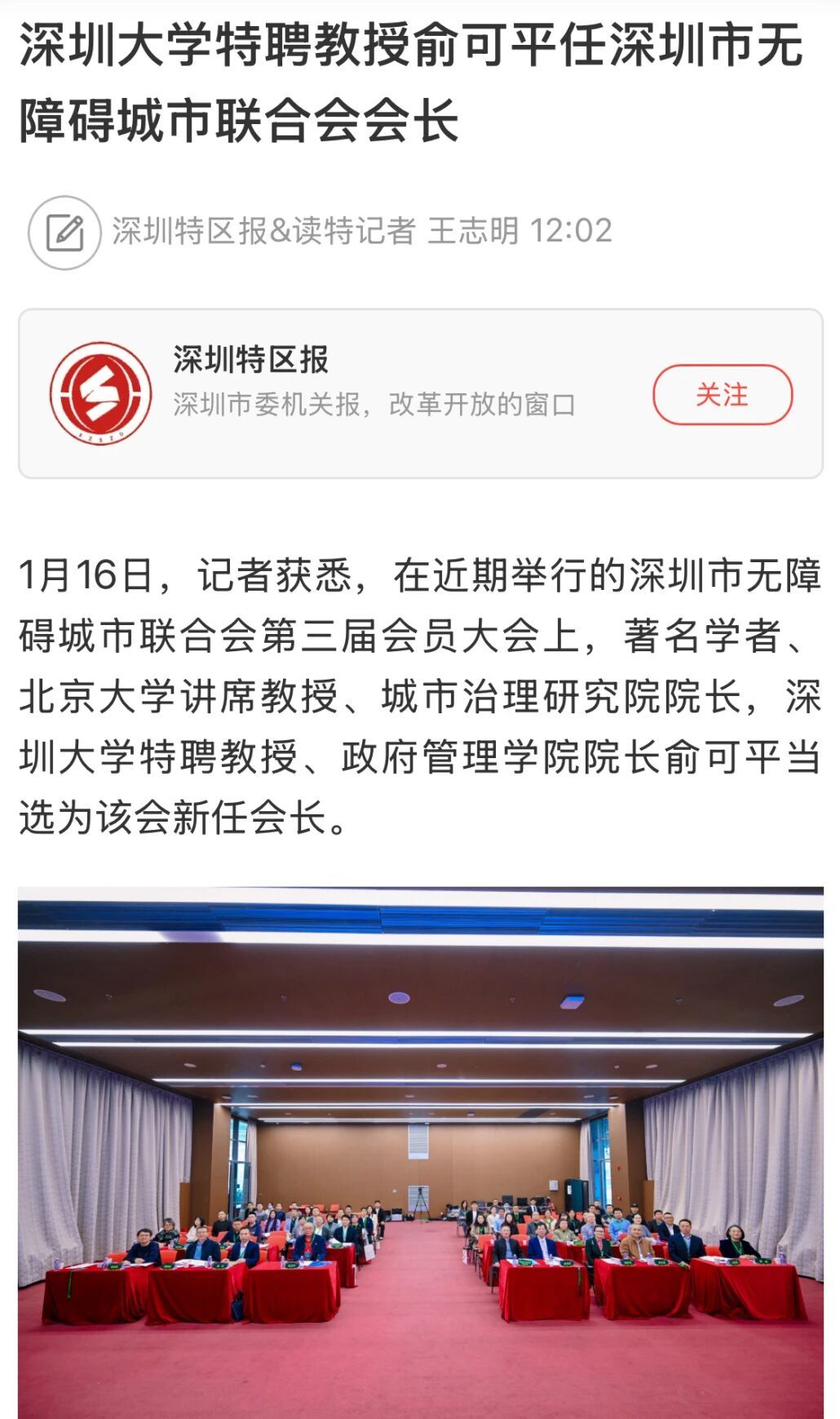 “无障碍”是一项基本权利、一种城市标配、一套文明准则。无障碍事业呼唤政府部门的远见与决心,呼唤市场主体的创新与责任,呼唤社会组织的活力与韧性,呼唤每一位市民的参与与呵护。深圳市无障碍城市联合会第三届换届大会暨第三届一次会员大会的圆满召开,标志着联合会进入高质量发展的新阶段。在新任会长俞可平教授的带领下,联合会致力于将无障碍理念深植城市肌理,让包容与温暖成为深圳先行示范区最动人的底色,并为中国乃至全球城市文明进步贡献更多的深圳智慧、深圳力量与深圳方案。