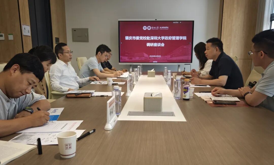 4月8日下午,肇庆市委党校常务副校长郑东升、教育长肖向前、科研办主任李维瑜一行到深圳大学政府管理学院调研。双方在丽湖校区守正楼B203会议室展开座谈交流,深圳大学政府管理学院执行院长陈文、行政管理系主任袁方成、公共政策系主任刘筱、政治学系助理教授曾扬、社会学系助理教授齐腾飞参加座谈。陈文主持座谈会。