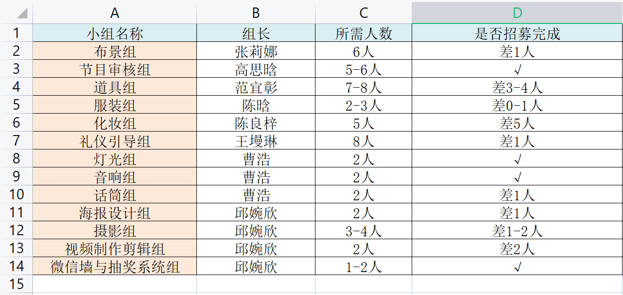 附目前招募情况表: