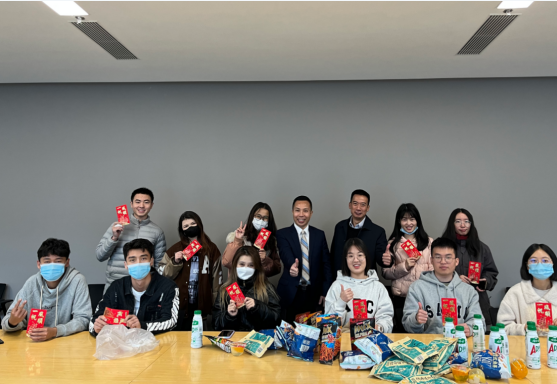 虎年迎新春,政管传温情。2022年1月31日,辛丑年腊月廿九,正值除夕,新春佳节至,情暖岁寒时,政府管理学院在丽湖校区守正楼B321会议室开展留校学生春节慰问活动,学院党委书记陈文,副书记王嘉蔚等老师,与寒假期间留校的同学欢聚一堂,共同庆祝虎年新年的到来。