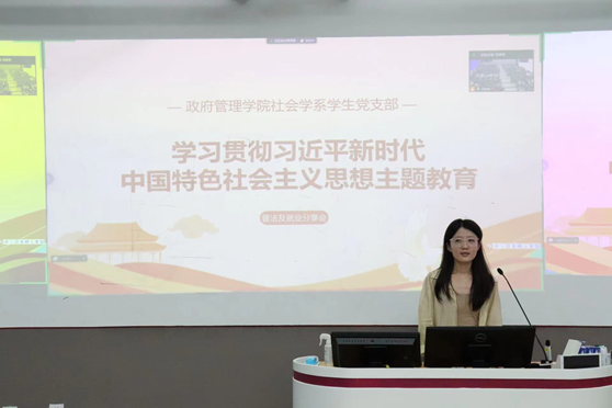为贯彻落实党的二十大报告提出的“就业优先战略”,实现高校学生充分高质量就业,号召学生学习先进就业经验,积极探索未来职业规划,深圳大学政府管理学院社会学系学生党支部于5月26日晚19:00在四方楼举办了“学习贯彻习近平新时代中国特色社会主义思想主题教育—普法及就业分享会活动”。该活动邀请了深圳大学法学院党员先锋队普法宣传小组及政府管理学院社会学系毕业生进行现场分享,活动反响热烈,参与学生人数达80多名。