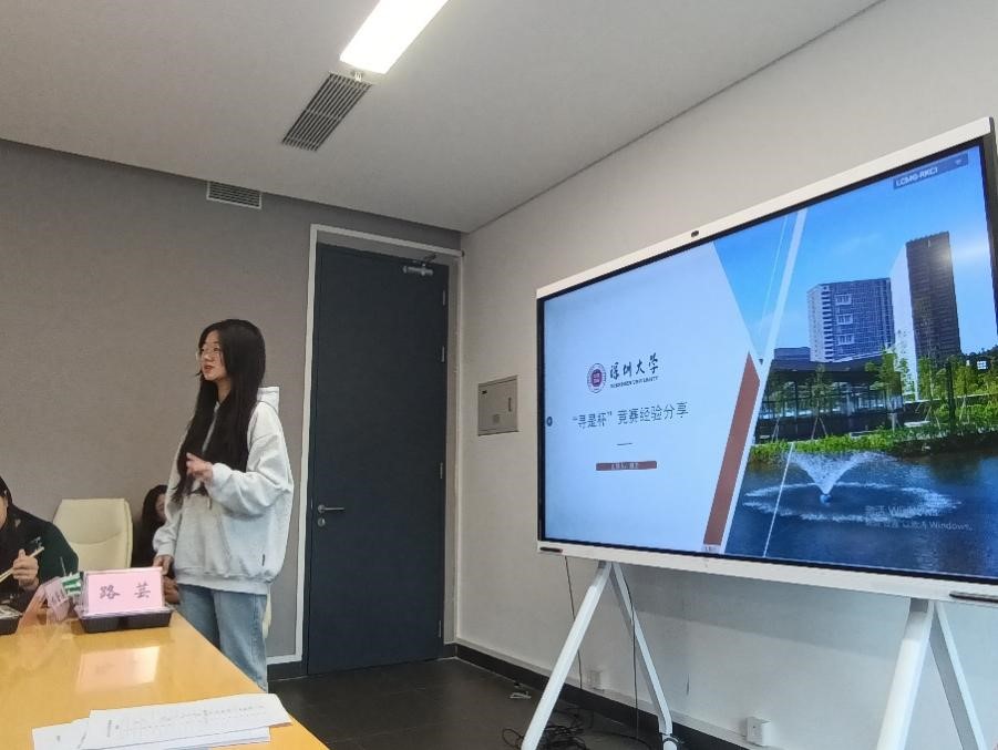 路芸同学则以科普“寻是杯”这一新晋赛事为切入点,向同学和老师们介绍她在参与第二届“寻是杯”全国大学生公共管理决策模拟大赛的备赛过程中的经验感想。她首先向我们介绍了深圳大学城市治理研究会,这也是她参与“寻是杯”的契机。在备赛过程的介绍中,她主要从参与培训、合理分工、模拟赛和正式比赛四个方面向同学们展示了她在不同阶段获得的体会。路芸同学还表示,期待学弟学妹们能够在第三届“寻是杯”全国大学生公共管理决策模拟大赛上“决胜沙场”。