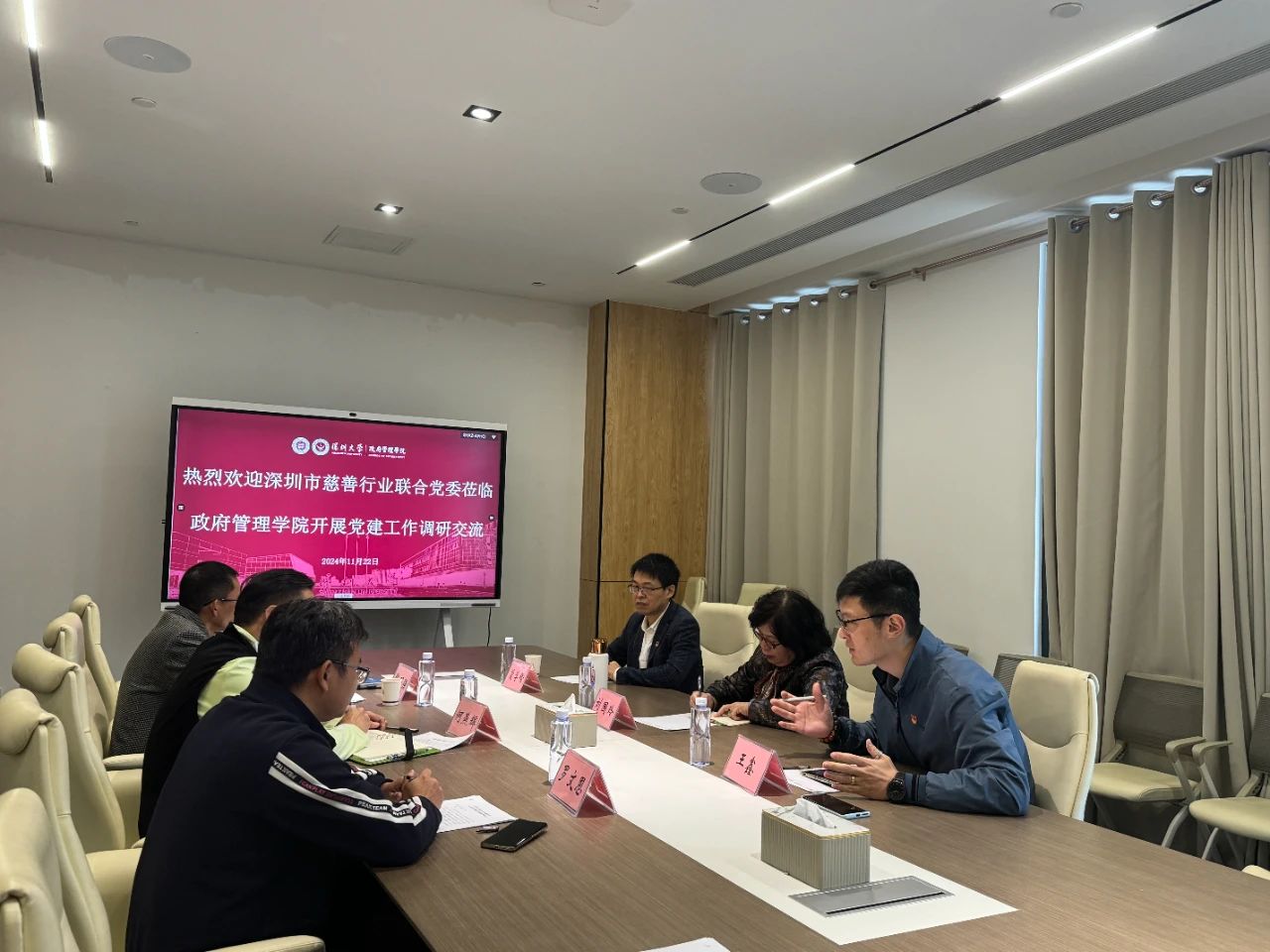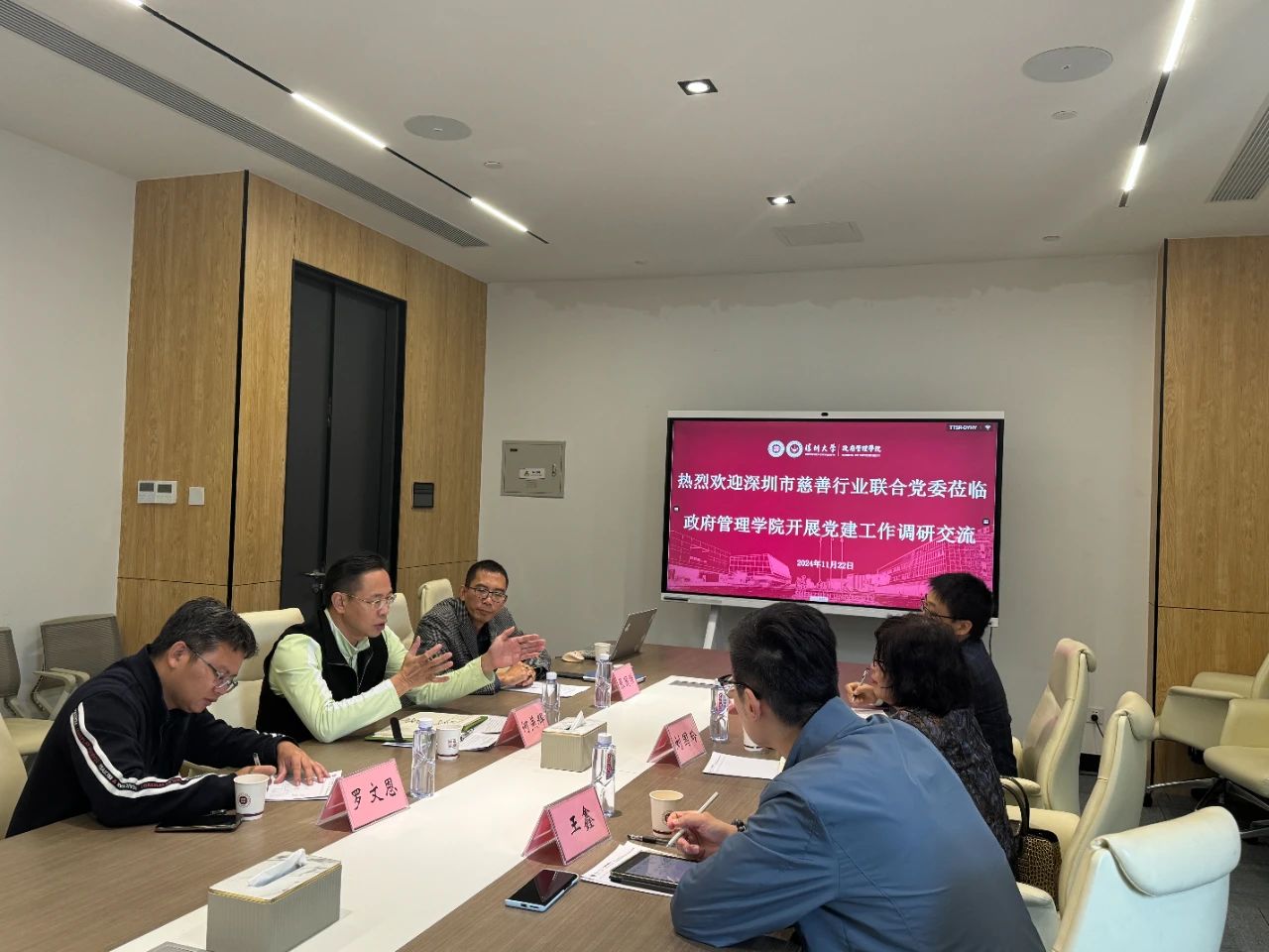 11月22日上午,深圳市慈善行业联合党委刘国玲一行到访深圳大学政府管理学院,探讨校社党建共建新路径。学院党委书记何燕辉、副书记张国强出席会议。会议由行政管理系系主任罗文恩副教授主持。