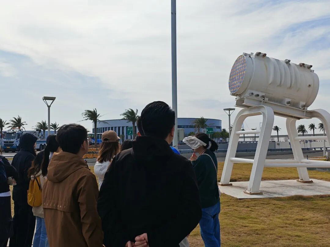 在讲解员的引导下,师生党员首先来到户外展区,观摩了海底沉管隧道的足尺钢壳试验段以及工程实体构件,近距离感受大国工程的精湛工艺与科技含量。大家还登上海边观景台,极目远眺,雄伟的深中大桥如长虹卧波,远处深圳机场航班起降,广阔海面上货轮穿梭,眼前这幅生机勃勃的图景,令在场师生党员无不心潮澎湃,为国家建设的宏伟成就感到自豪,也对粤港澳大湾区经济发展的活力与韧性充满期望。