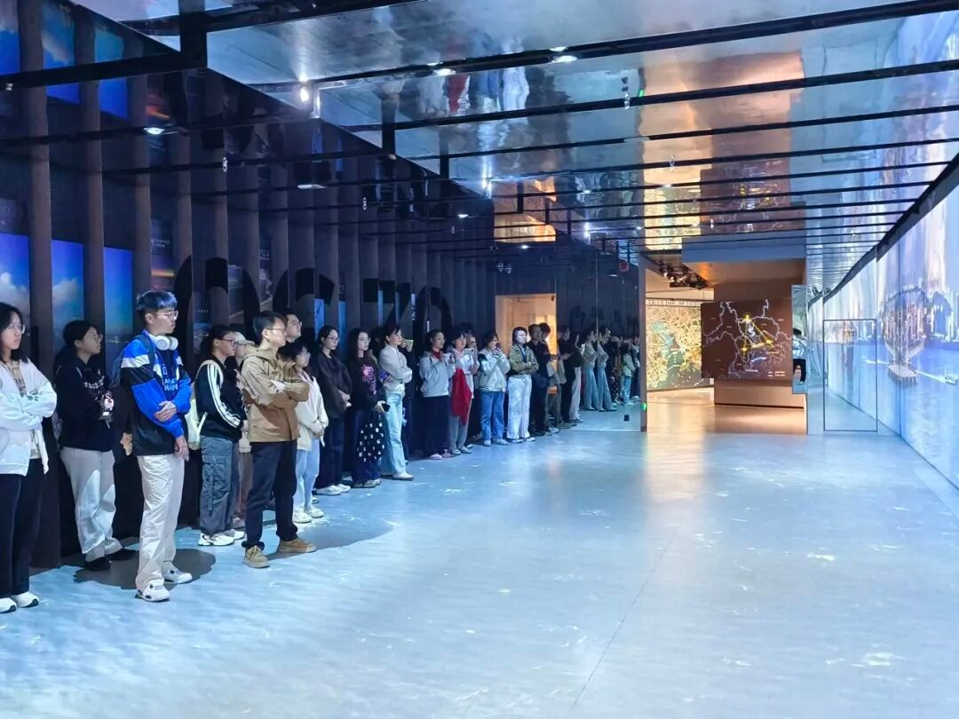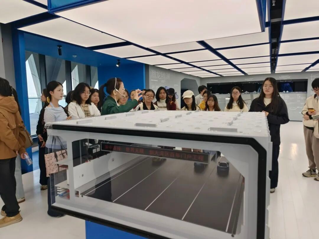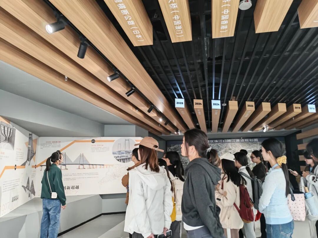随后,师生党员一行进入粤港澳大湾区跨海通道科普基地参观学习。通过聆听讲解,浏览展厅陈列、观看3D展示片、参与互动体验项目等多元形式,党员们对深中通道的工程全貌形成了立体且深入的认知。大家不仅系统认识该工程的技术宏大规模与创新成果,还深入了解粤港澳大湾区的桥梁发展脉络与未来蓝图。此次实践活动让师生党员真切感受到深中通道在加速珠三角“一小时生活圈”成型、助推粤港澳大湾区要素流动与融合发展中的关键作用。