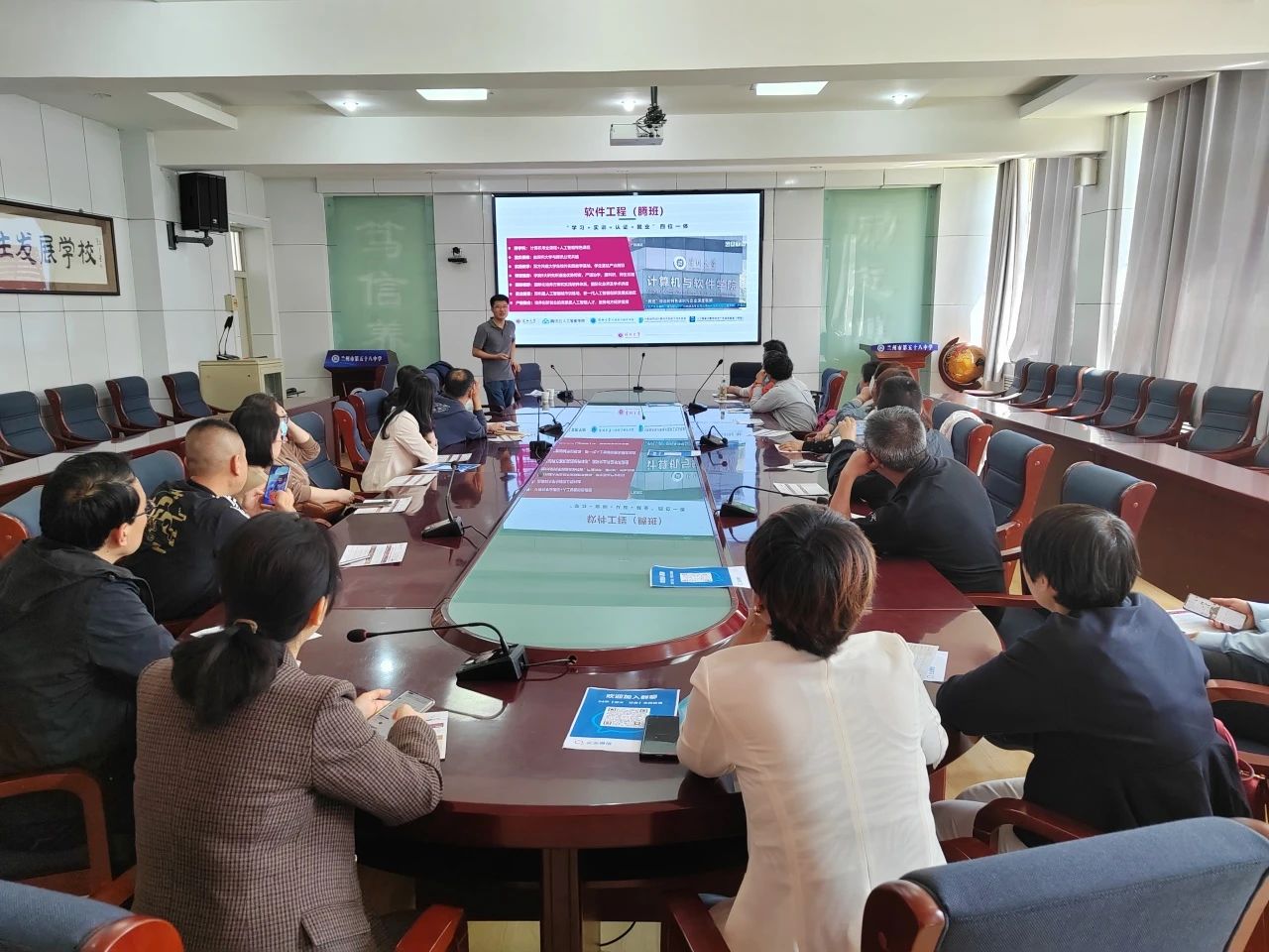 4月24日晚上,齐腾飞、曹金羽老师走进兰州市第三十三中开展招生宣讲及现场咨询。宣讲会前,齐老师代表学校向兰州市第三十三中送上优秀学子喜报,双方合影留念。会后,与会师生踊跃提问,齐老师和曹老师耐心解答师生关于深大及学院专业的相关问题。