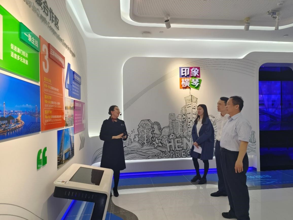17日下午,调研组一行首先参观横琴粤澳深度合作区规划建设展示厅,横琴统计局邹贤康副处长陪同参访。调研组一行观摩了展厅内各大板块单元,重温了习近平总书记四次亲赴横琴考察的历史瞬间,了解了建设横琴的初心是“为了澳门产业多元发展创造条件,为澳门长远发展开辟广阔空间,注入新动力”,系统学习了建设横琴粤澳深度合作区、以及粤澳共商共建共管共享新体制和琴澳一体化布局等重要内容。