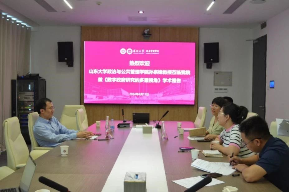 2024年4月12日,行政管理系问道公管第13期学术沙龙在丽湖校区守正楼B201会议室举行。我院副院长吴海燕教授主持本期学术沙龙,山东大学政治学与公共管理学院副院长孙宗锋教授做《数字政府研究的多重视角》学术报告。学院30余名师生参加了此次学术沙龙。