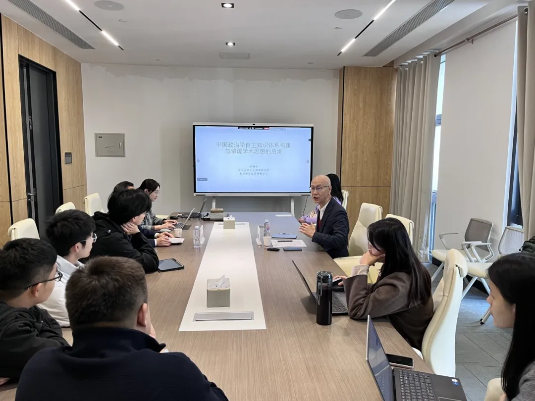 2025年12月15日,中山大学人文高等研究院特邀访问教授、北京大学政府管理学院教授徐湘林受邀到访我院,并以“中国政治学自主知识体系构建与邹谠学术思想的启发”为题在守正楼B203作讲座分享。讲座由学院执行院长陈文教授主持,学院多名师生参与交流。