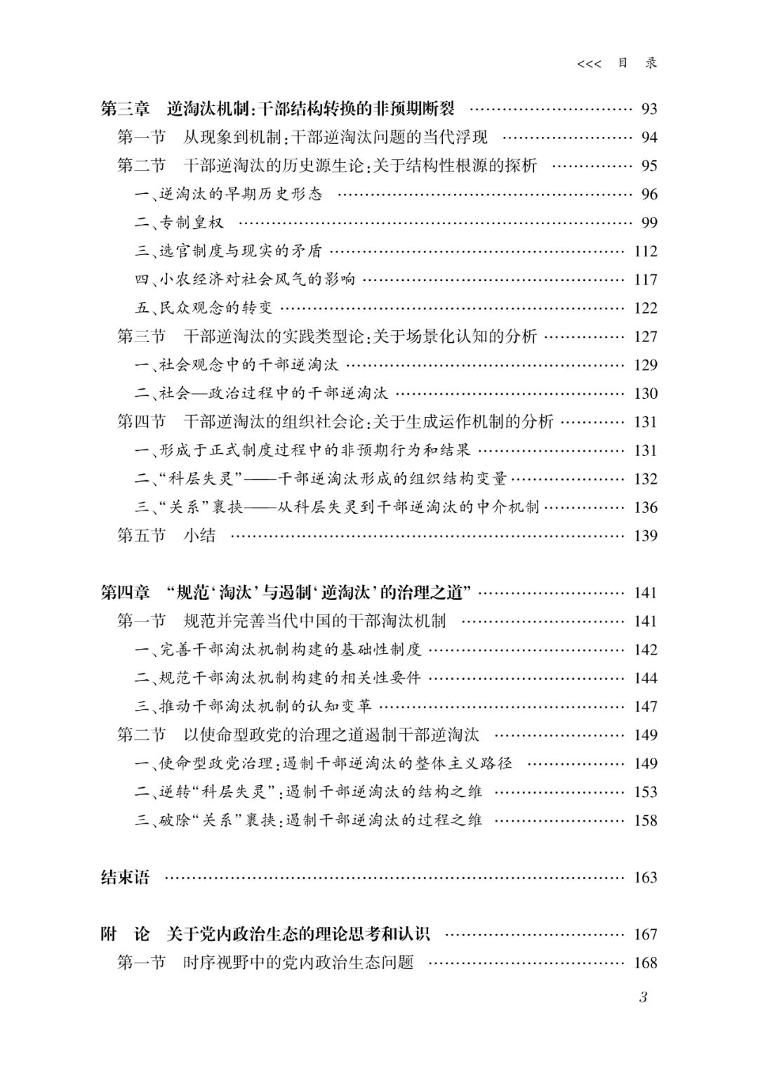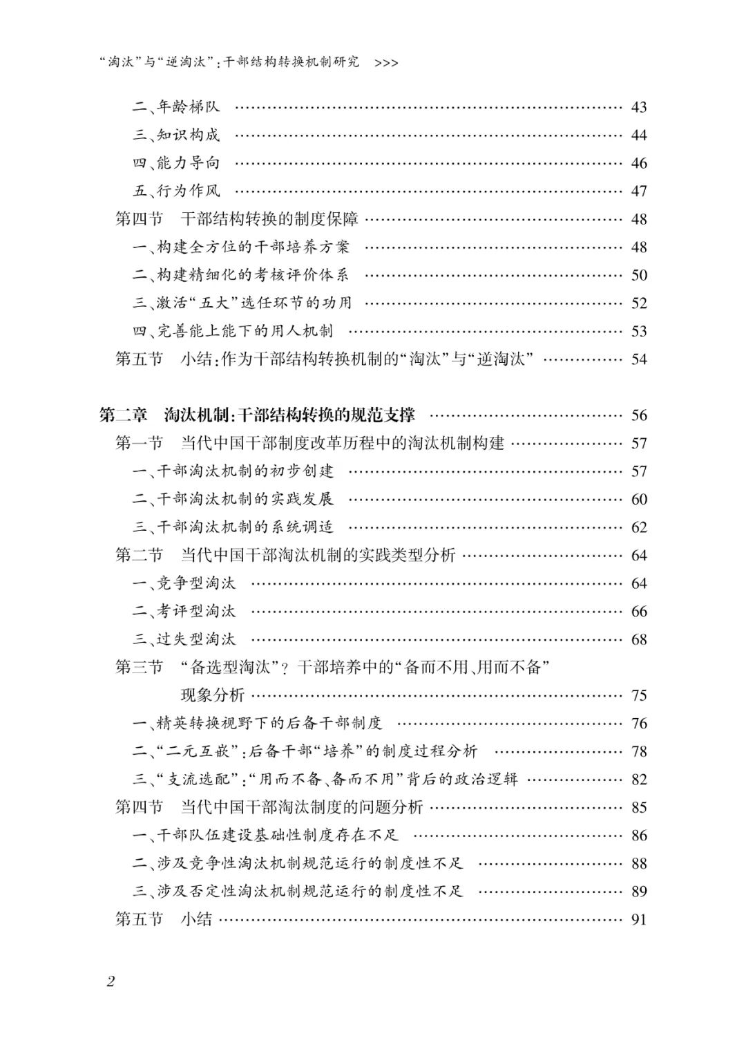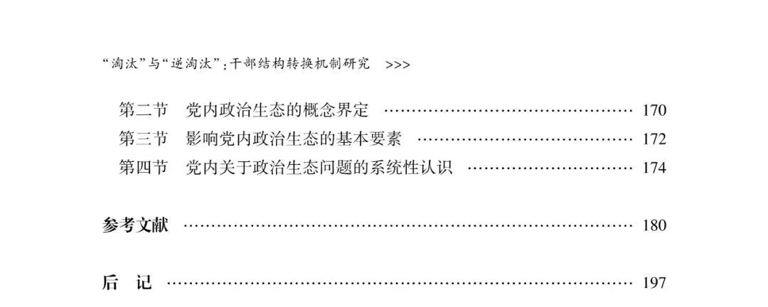 该书在干部体制、党政体制及党领导国家发展的广义政治逻辑中展开,将中观意义上的干部结构状况视为影响干部体制韧性、党政体制运行以及政党治理成效的重要自变量,而着重探析这个中观理论链条中的中间变量——干部结构转换机制。在认识论意义上,干部结构被视为一个面向外部党政体制和内部队伍建设的结构化存在,既是支撑党政体制权力运作的中枢结构,又是支撑干部队伍能力形成和能动性发挥的核心结构。在实在论意义上,干部结构可依据政策要求划分为政治标准、年龄阶梯、知识构成、能力导向、行为作风等五大维度。在当代中国干部人事制度的叙事背景下,干部结构转换实际上是通过身份意义上的干部 “进出”、 职级意义上 的干部 “上下” 与职权意义上的岗位 “虚实” 调整来实现的,它不仅限于单一的干部人事制度环节, 而且与干部选任、管理和培养三大制度环节相衔接、相融合。对此,该书主要从干部淘汰与逆淘汰的视角探析干部结构转换机制的运作,并将二者分别视为干部结构转换的规范支撑和非预期断裂。