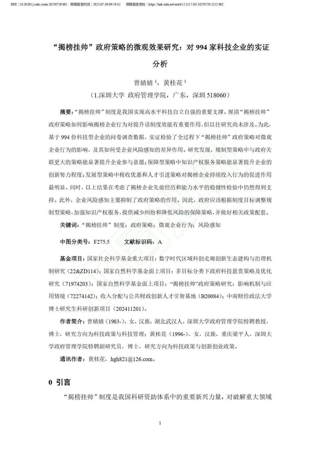 文章来源:曾婧婧,黄桂花.“揭榜挂帅”政府策略的微观效果研究:对994家科技企业的实证分析[J/OL].科学学与科学技术管理,1-38[2025-08-26].https://doi.org/10.20201/j.cnki.ssstm.20250729.001.
