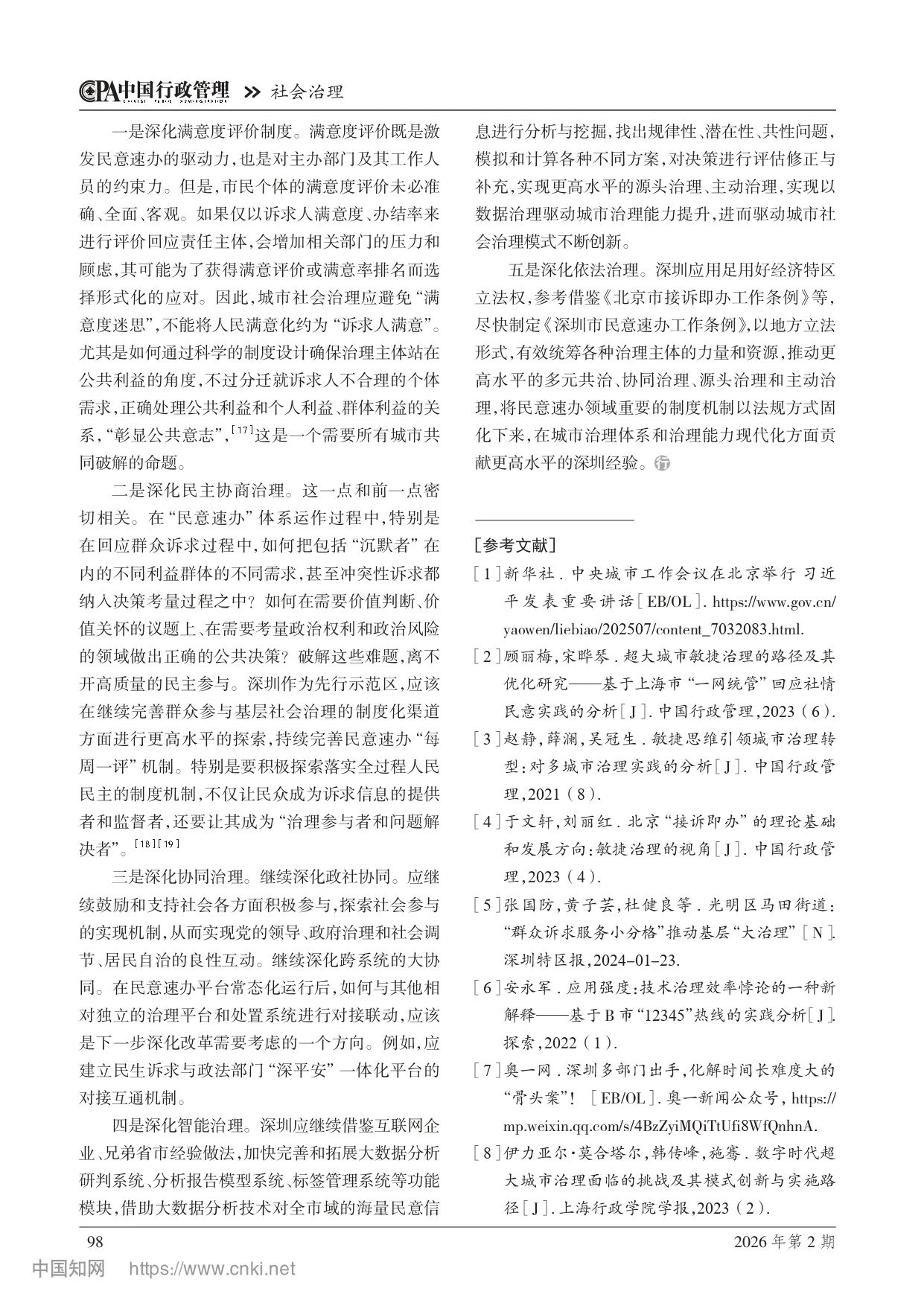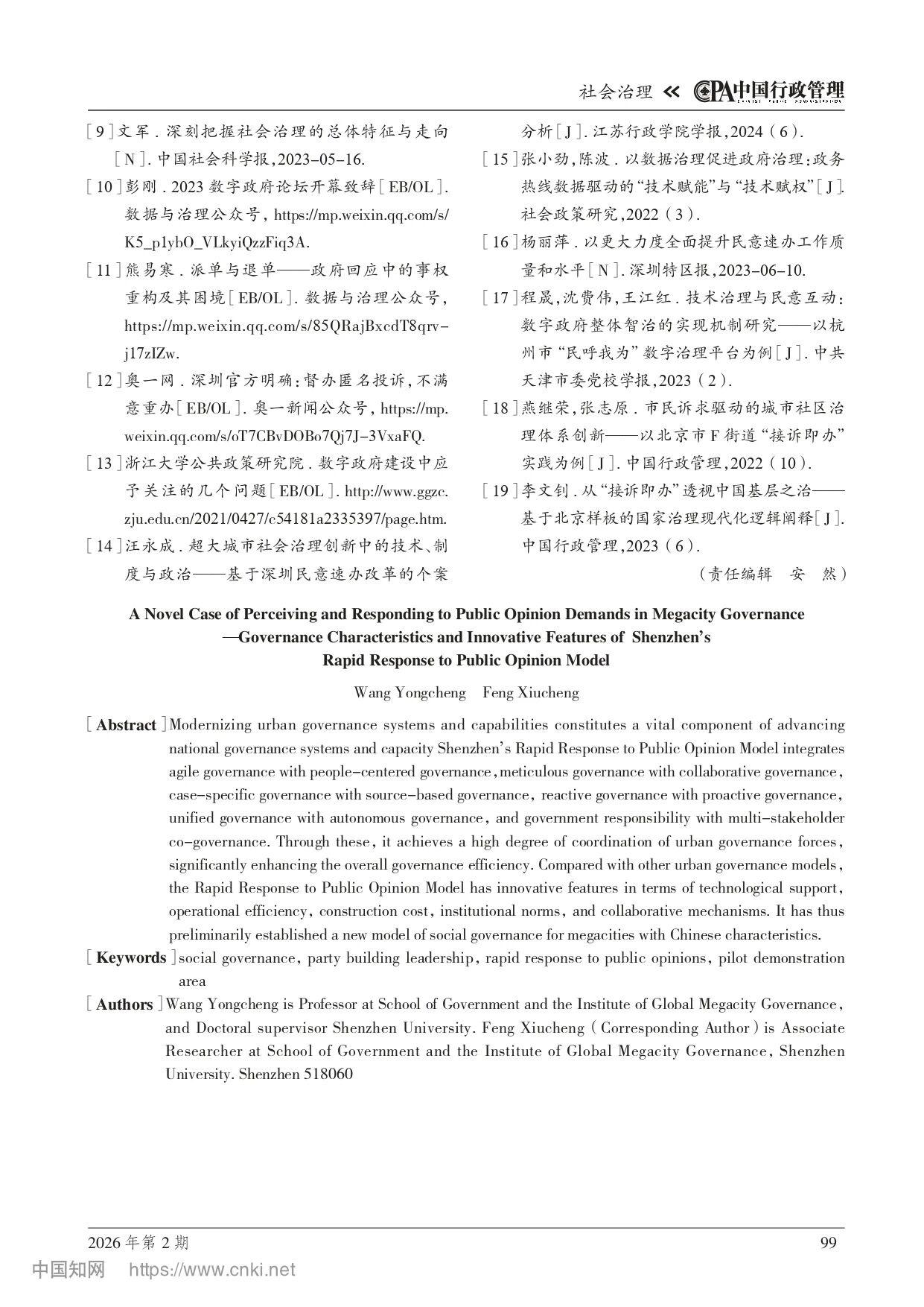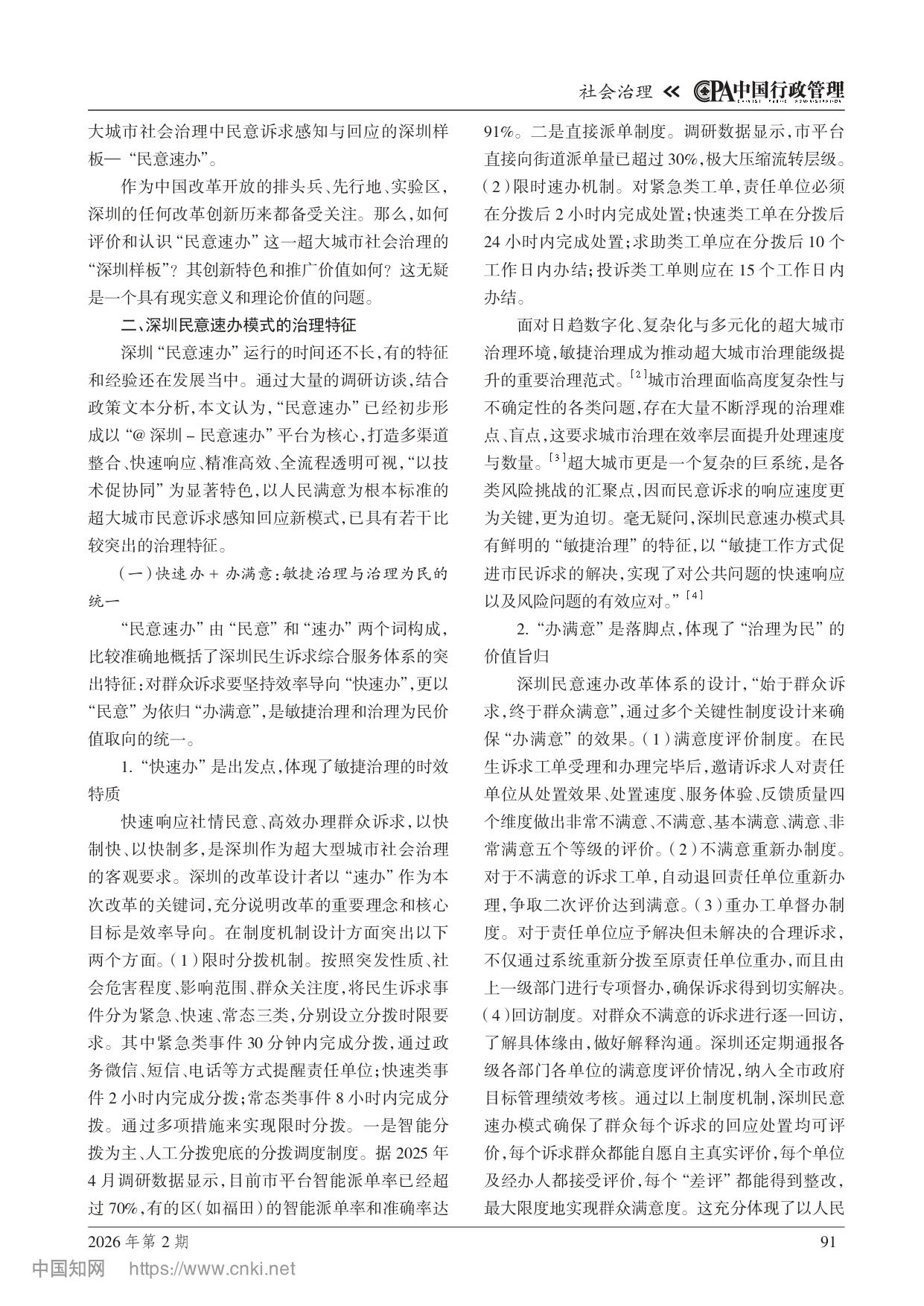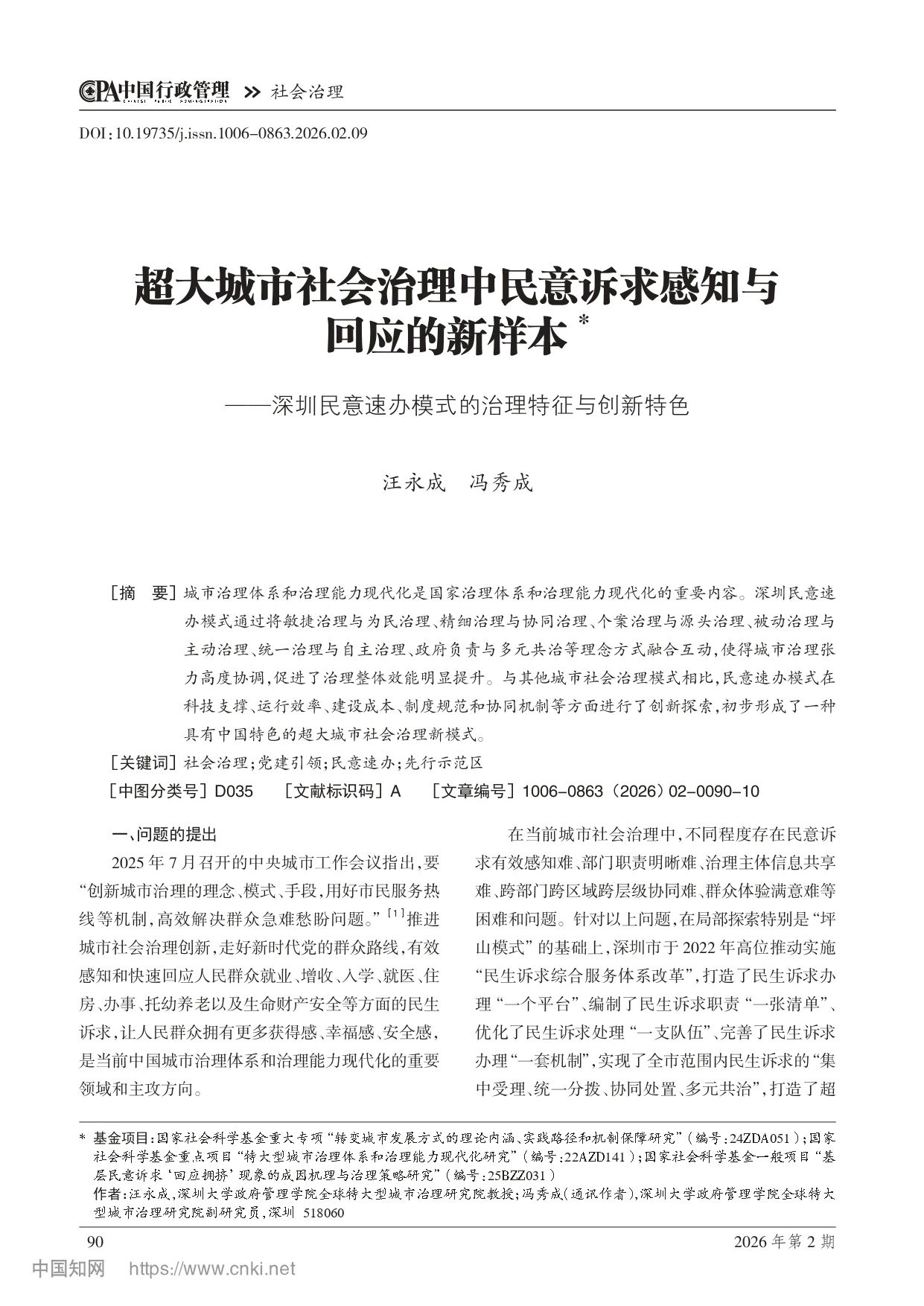 汪永成,冯秀成.超大城市社会治理中民意诉求感知与回应的新样本——深圳民意速办模式的治理特征与创新特色[J].中国行政管理,2026,42(02):90-99.DOI:10.19735/j.issn.1006-0863.2026.02.09.