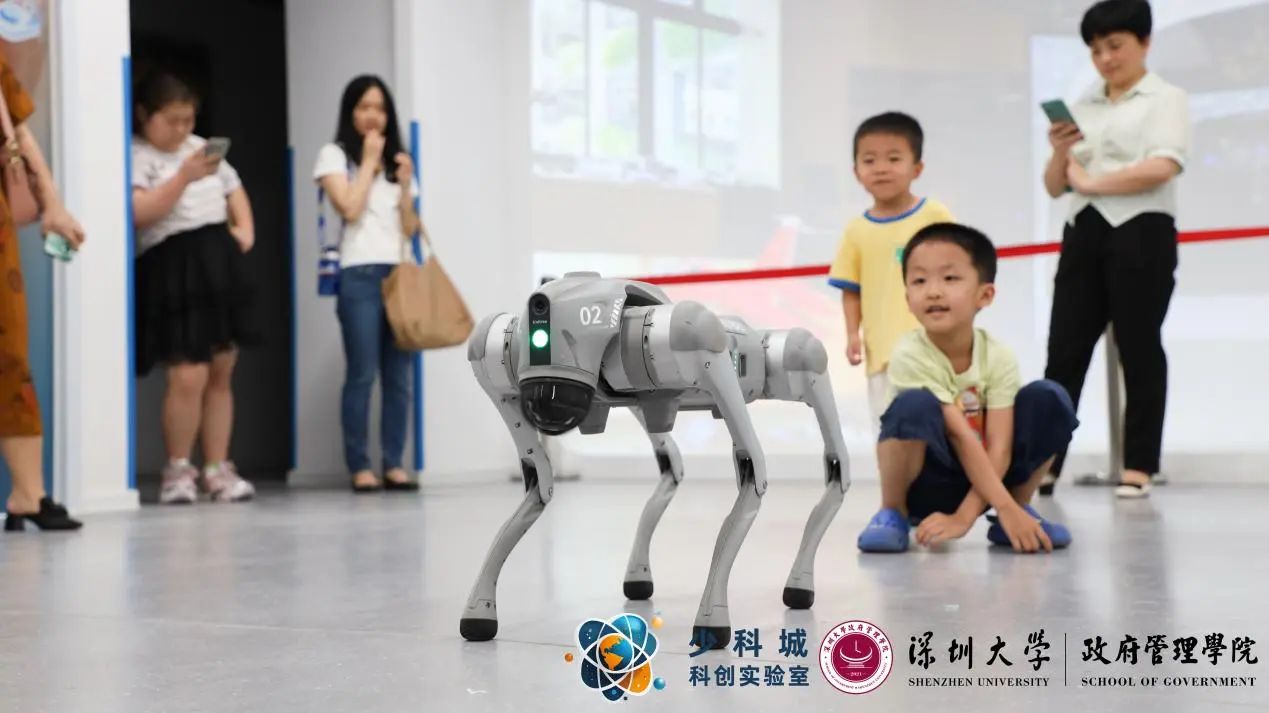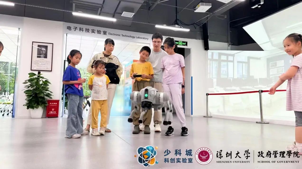 与此同时,实验室的工作人员也带领孩子们体验前沿的仿生机器人。GO2机器狗以其灵活的身姿和智能的反应赢得了阵阵掌声,孩子们纷纷与机器狗互动,感受科技的魅力。此外,跳舞机器人、新能源纯电动赛车和航空航天模型等项目也同样精彩纷呈。