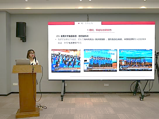政府管理学院第一届研究生会主席团成员劳凤桃代表全体研究生会成员进行了年度工作总结报告,由在场的外院嘉宾和学生代表对研究生会全体成员进行了义工时的评定。