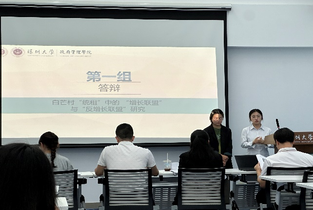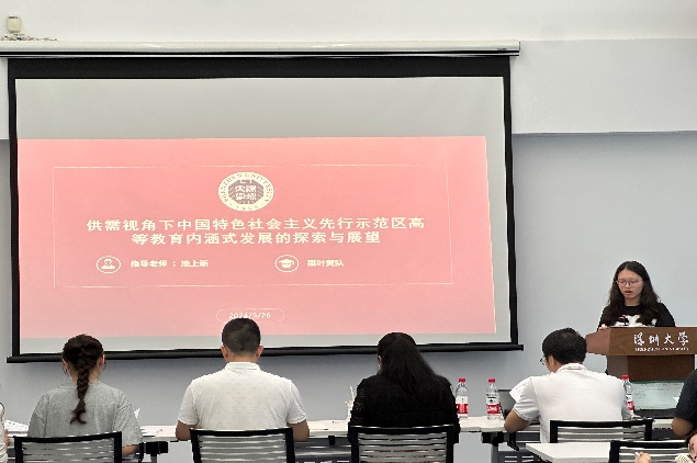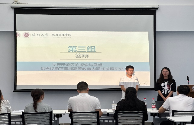 决赛于5月26日下午举行,评委由深圳大学政府管理学院副院长、社会学系主任黄斌欢老师、公共管理系副教授耿旭老师、社会学系副主任徐拓倩老师和学院辅导员、副教授黄锐波老师出席颁奖典礼。5支队伍围绕中国特色社会主义高等教育、社工新政、健康中国战略、深圳市人才政策、深圳市乡村统租政策等当下社会热点以及前沿政策,进行生动展示以及深入分析,并结合前期调研经验回答了四位评委提出的问题;评委们也根据各队伍的项目成果给出了一针见血的指导性点评、分析和建议。