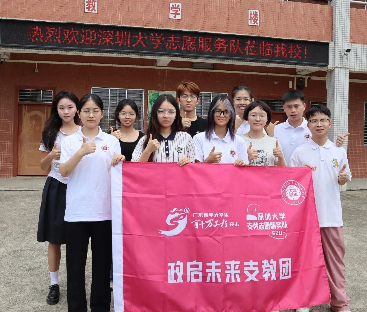 在广东省“百千万工程”项目的号召下,根据广东省“双百”行动以及深化广东青年大学生“百千万工程”突击队行动等有关部署和要求,深圳大学政府管理学院“政启未来支教团”走进陆丰市后坑小学,开展暑期“百千万工程”暨“三下乡”活动,积极推动乡村教育发展。