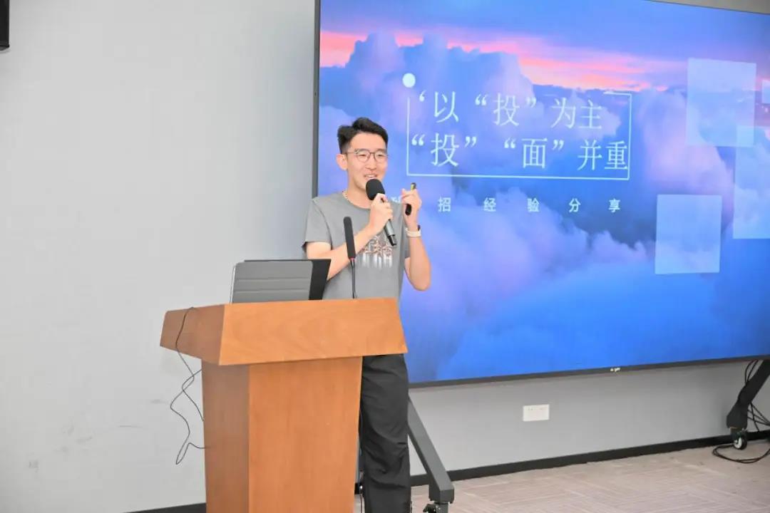 我院21级行政管理专业的金圣淋学长,曾在腾讯、招行等公司实习,目前已接收到比亚迪、拼多多等公司的offer,他从“简历投递”与“面试经验”两个方面分享了秋招经验。在简历投递方面,他分享了个人投递150余份简历的经验,尤其提到“选择的前提是有权可选”,鼓励大家多投递、扩大选择面;同时他建议大家在投简历时做好记录、主动追踪,防止错过宝贵的面试和录取机会。在面试经验方面,他提到“面试本质上是一场开卷考试”,要提前学习面试对应的行业、公司、岗位等信息,做到有的放矢,面试时方可如鱼得水。