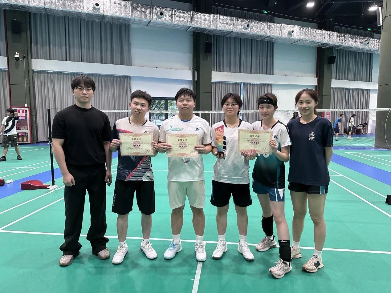 最终,这场智慧与实力的较量呈现出了令人叹为观止的精彩对决!池门小分队凭借默契配合战胜不准插队,而风华晓月校友队则战胜不会辩论是我不队,双双会师决赛!每一记扣杀都凝聚着团队的智慧,每一次救球都闪耀着拼搏的光芒,这就是政管羽毛球最动人的魅力!